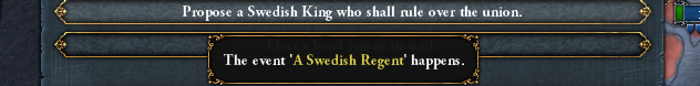 선택지 2번: 연방을 통치할 스웨덴 출신 왕을 제안 - 섭정 이벤트 발생