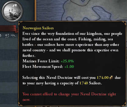 전통: 연간 해군 전통 +1, 국가 인력 변동치 +20% (이전: 함선 내구도 +5%, 조세 수입 +10%)