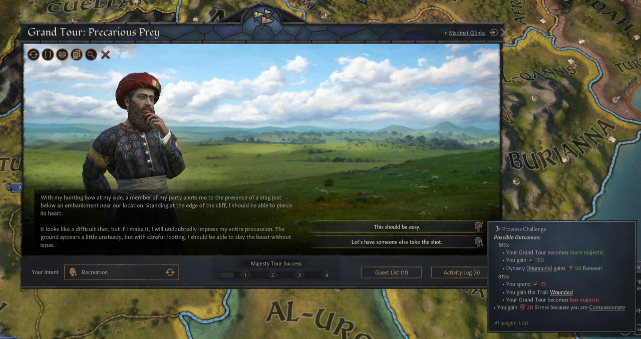 -의도를 통해 자비를 보일지, 권위를 확립할지, 같이 술을 마실지 등을 선택할 수 있음