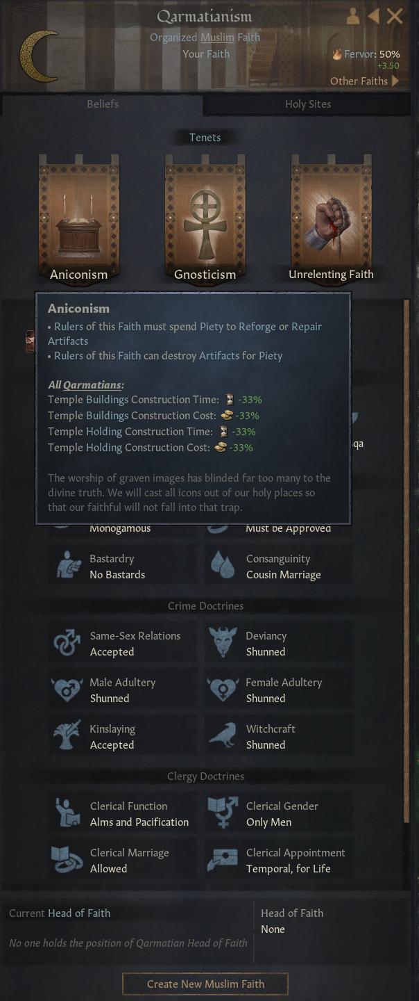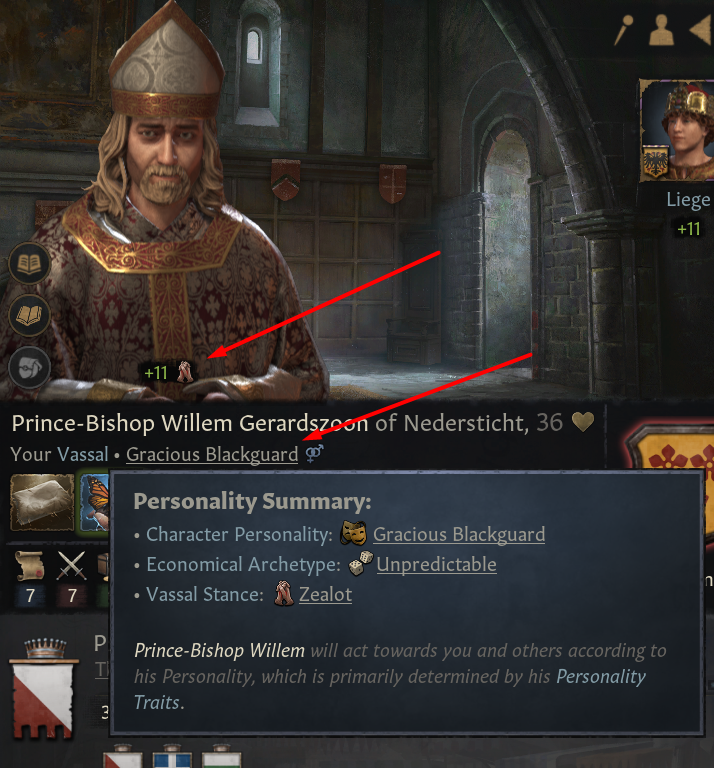 -신앙 문제에 집중하며 신앙심 깊은 활동으로 회유 가능. 독실한, 앙심깊은 봉신들과 성직자들이 이 태세 보통 선택