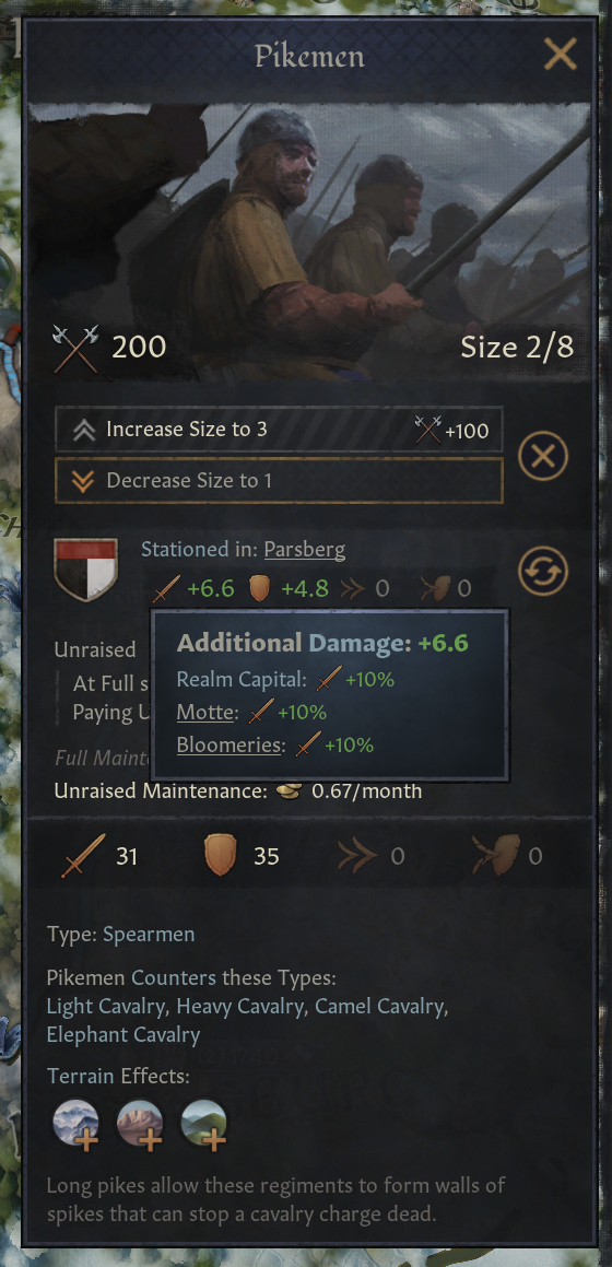 -이제 영지 하나당 무장병 1연대 배치 가능하며 배치된 무장병은 지역 건물에서 보너스 획득