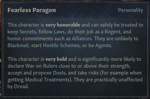 -지위와 위신 신경쓰며 자신들이 속한 봉역의 힘을 세계에 보여주기를 원함. 용감한, 냉혹한 봉신들이 이 태세 선택