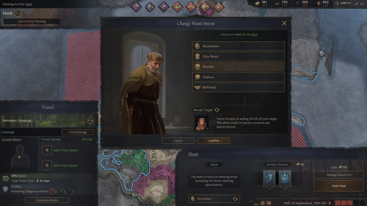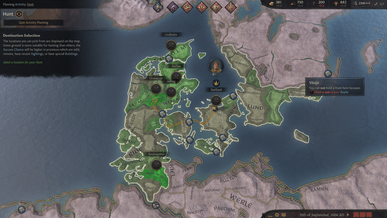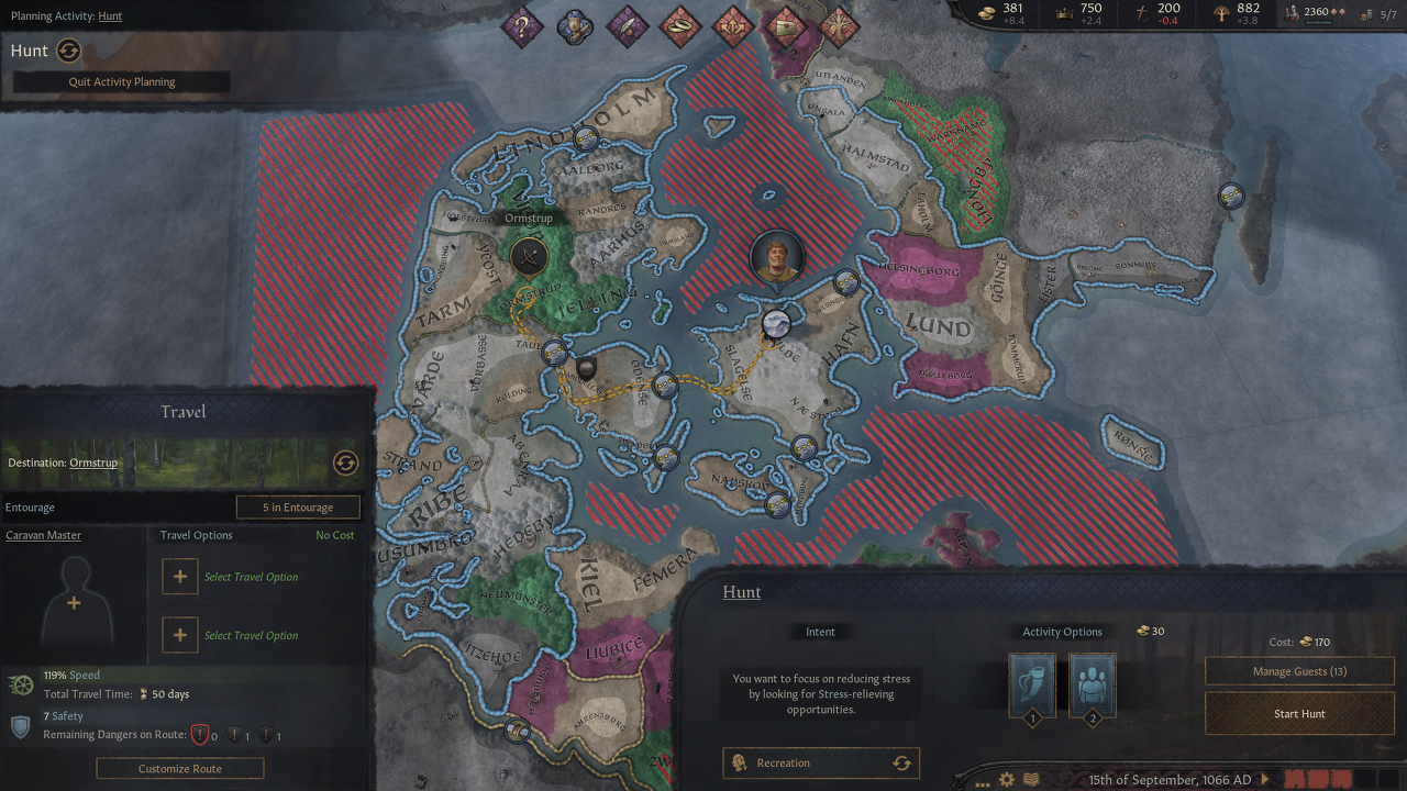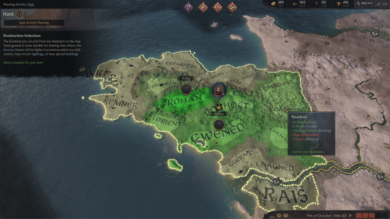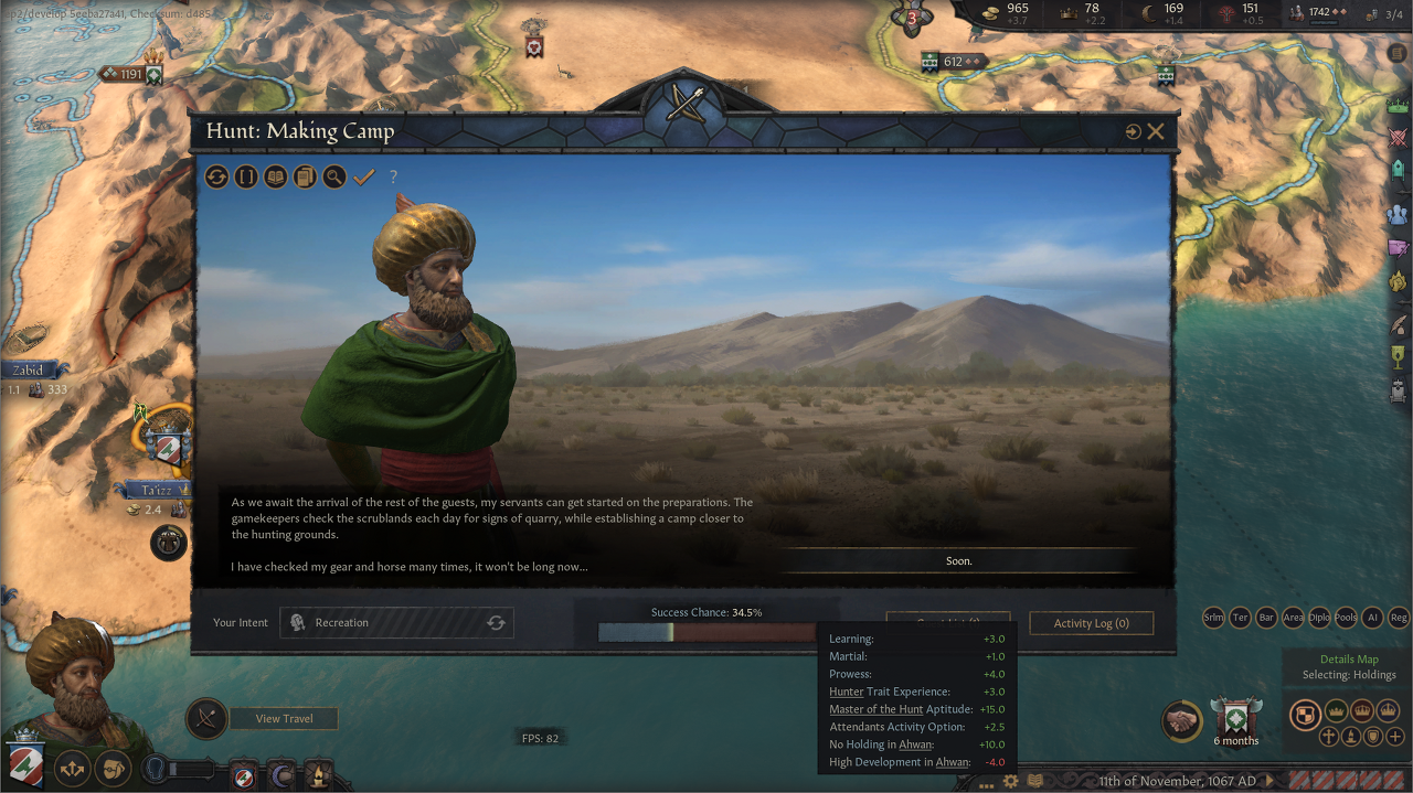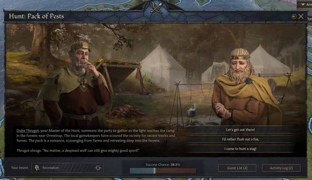 -활동마다 참여 인원 수도 정해져있음. 결혼식이나 토너먼트 같은 경우 사냥보다 참여 인원이 많음. 인원 한계를 넘어서 초청할 경우, 덜 중요한 인물들이 자동으로 걸러짐