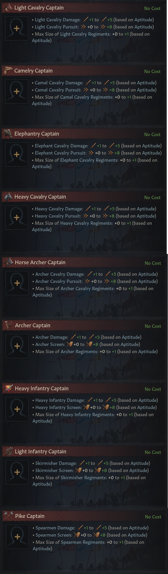 -부사령관, 어릿광대: 기본 사용 가능한 간부