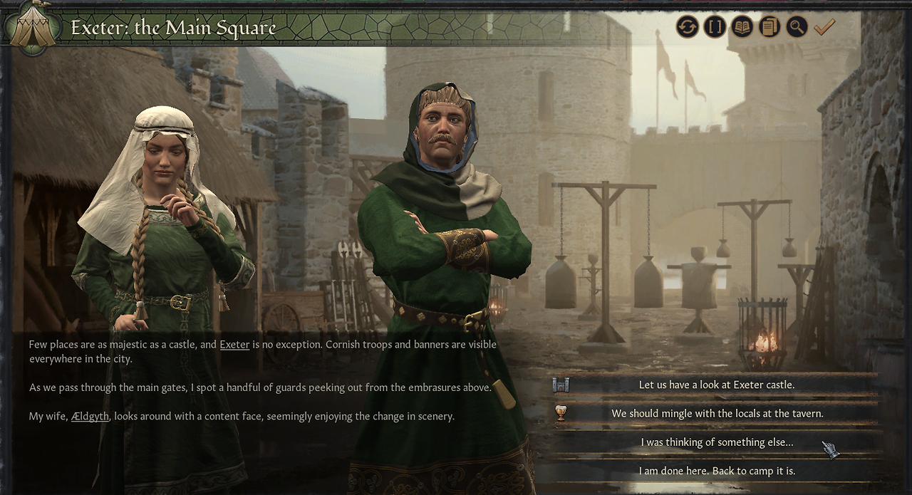 -지역의 영지 방문해 새로운 인물 만나거나, 식료품 사거나 할 수 있음