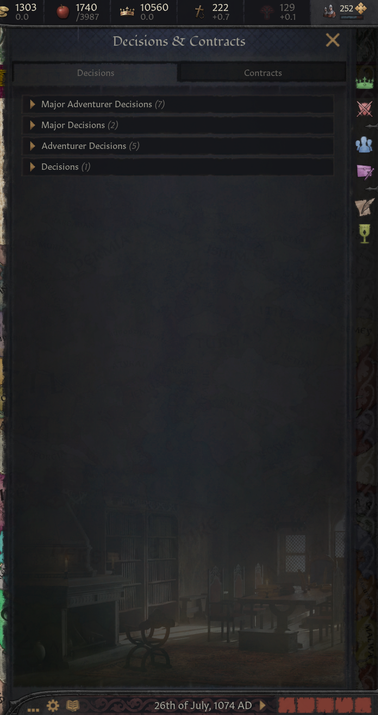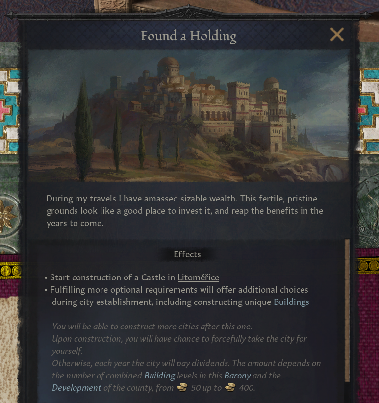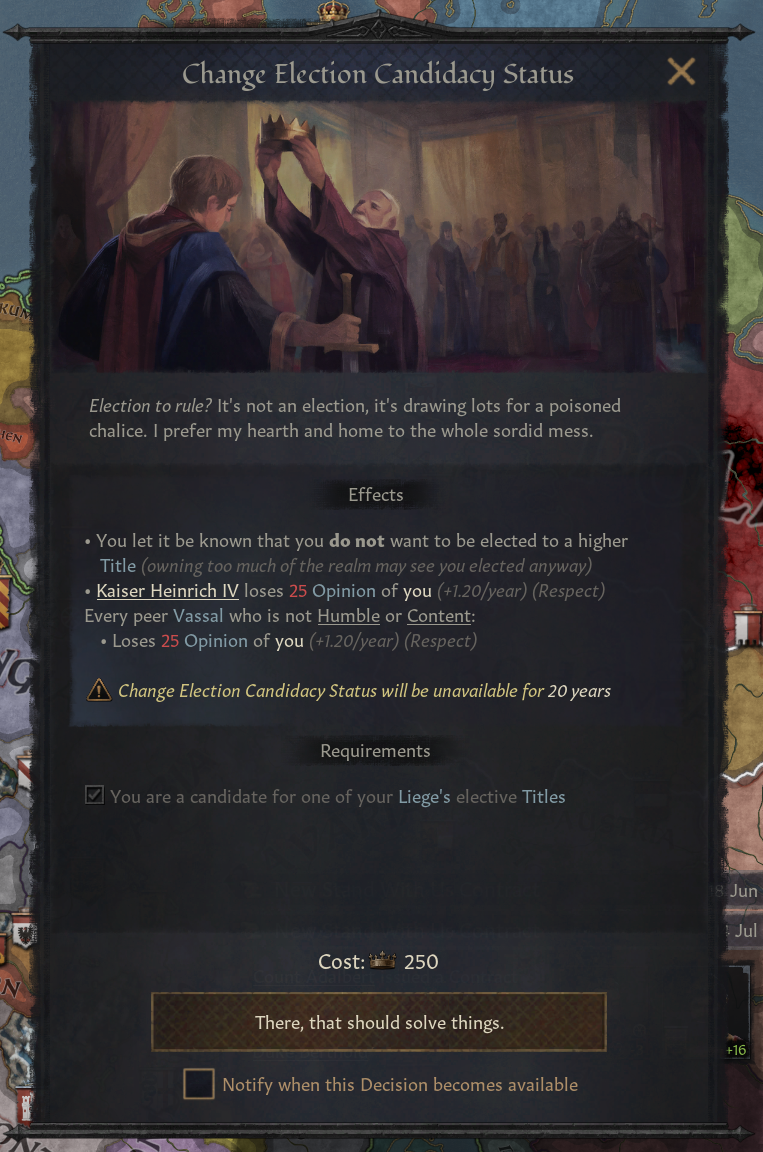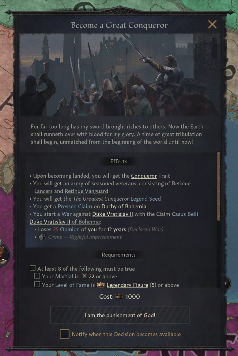 -소규모 영지(백작령 3개 이하) 의 백작/공작만이 해당 결단 채택 가능