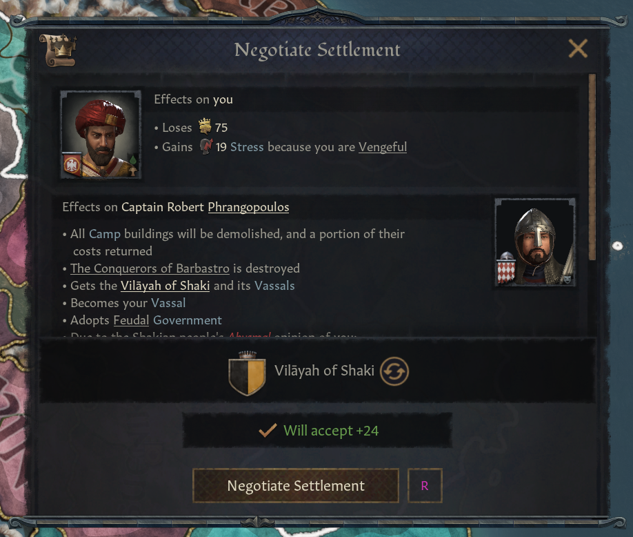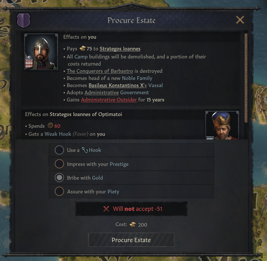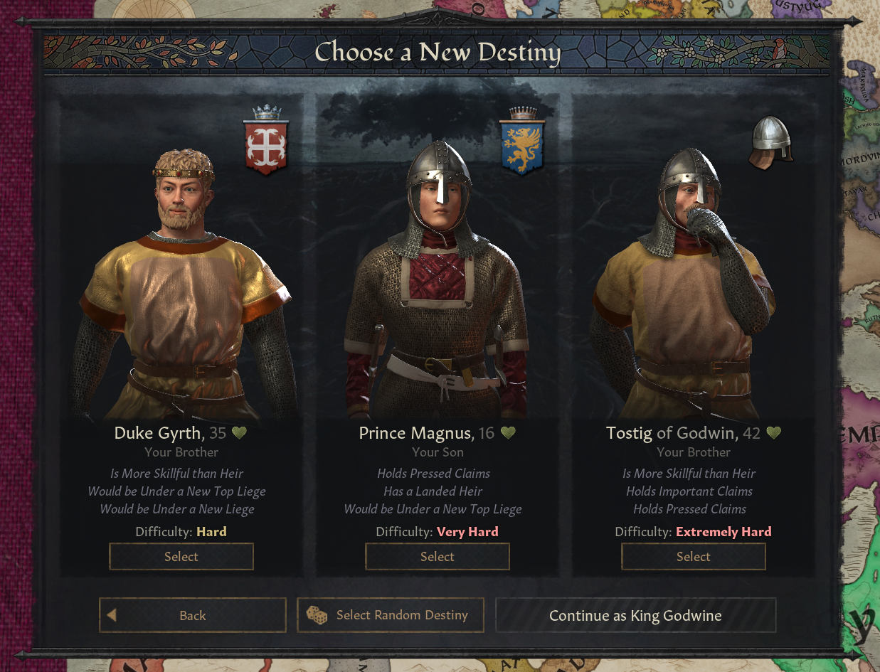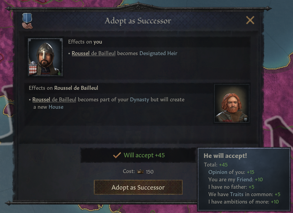 -1가지 계승 유형으로 잠금되어 있음: 작위는 장자 상속(혹은 가장 가까운 친척) - 해당 인물이 당신의 부하일 경우