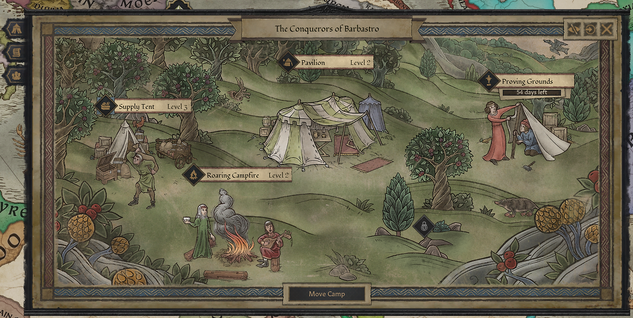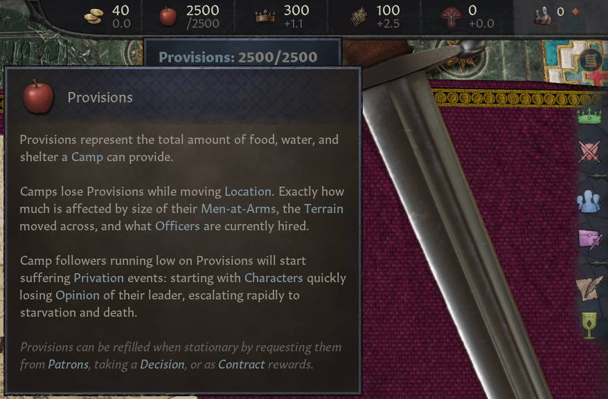 -식료품은 인물이 아닌 야영지가 이동할 때만 소모: 연회, 토너먼트, 성지순례는 인물만 이동하기에 소모 안함