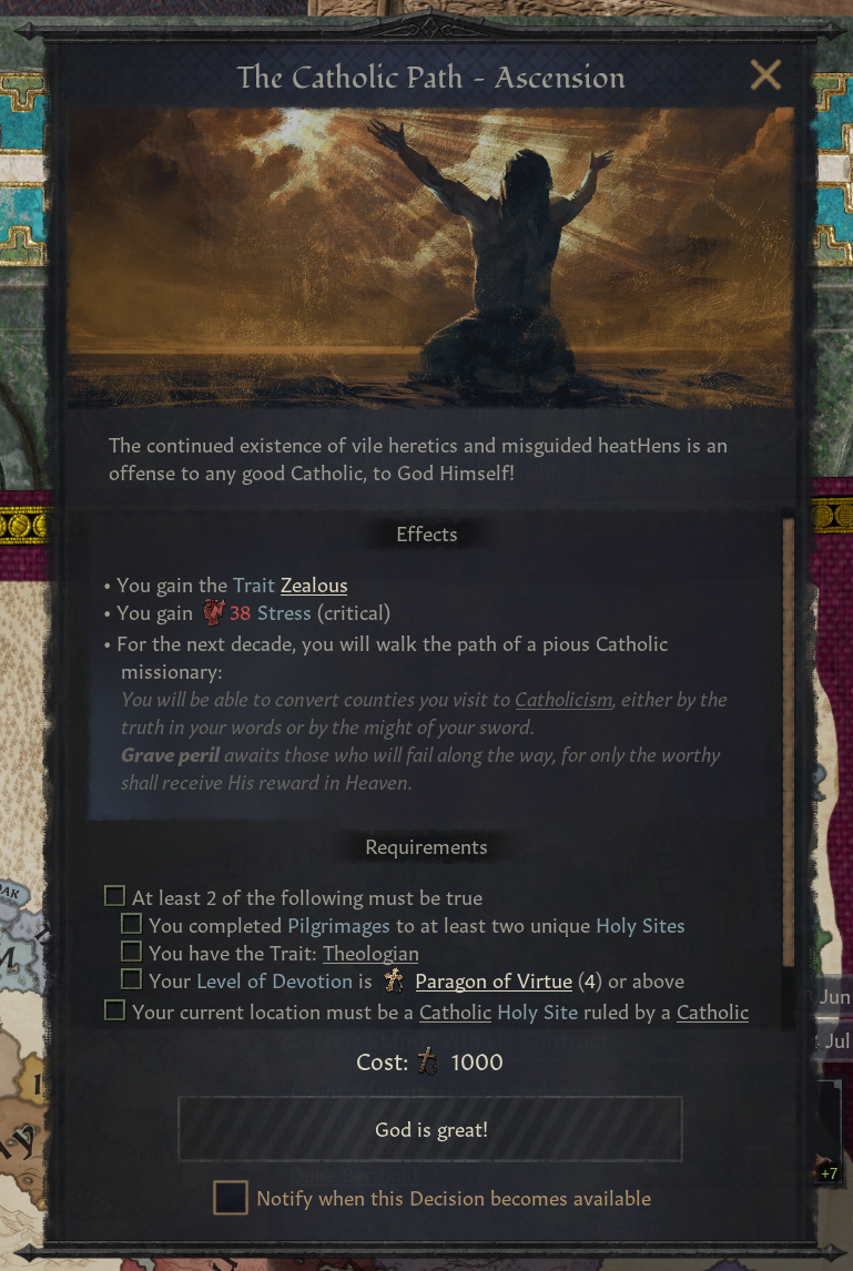 -선교사가 되어 많은 백작령을 당신의 신앙으로 만들 수 있음