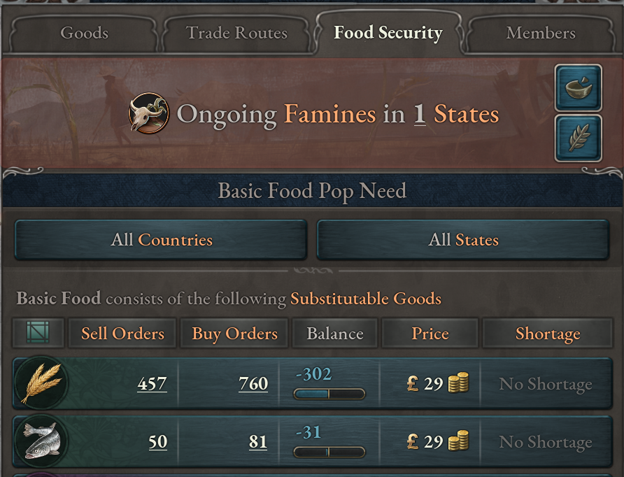 1.8에서는 이제 기본 식량 수요에 해당하는 상품도 품귀 현상이 일어납니다. 기준은 기존과 같이 수요가 공급을 크게 초과하면 일어납니다.