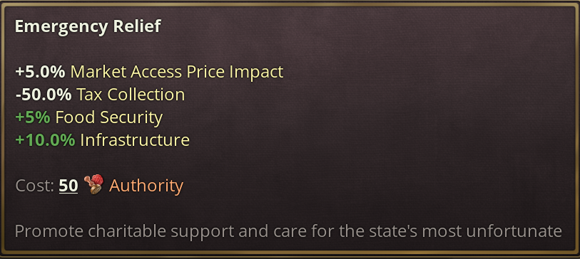 기근은 정치적 선언에 불과하므로, 스톡홀름 먹물들이 서류에 슥슥 사인한다고 해서 노르웨이 농노들의 삶이 개선되지는 않을 것입니다. 기근의 발생은 팝에게 직접적인 영향은 없습니다. 단 향후 컨텐츠가 추가될 수는 있습니다.