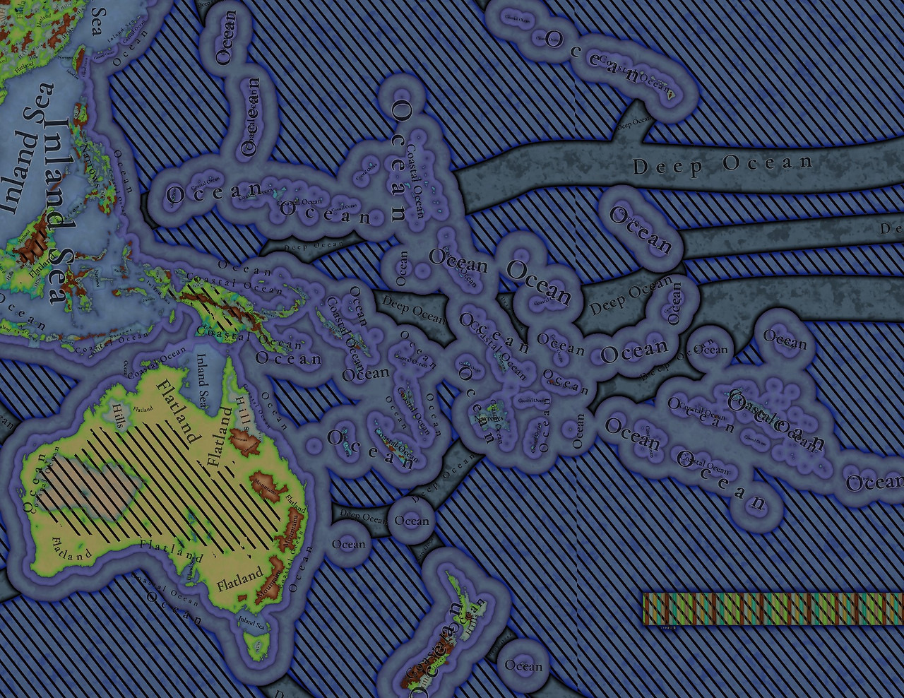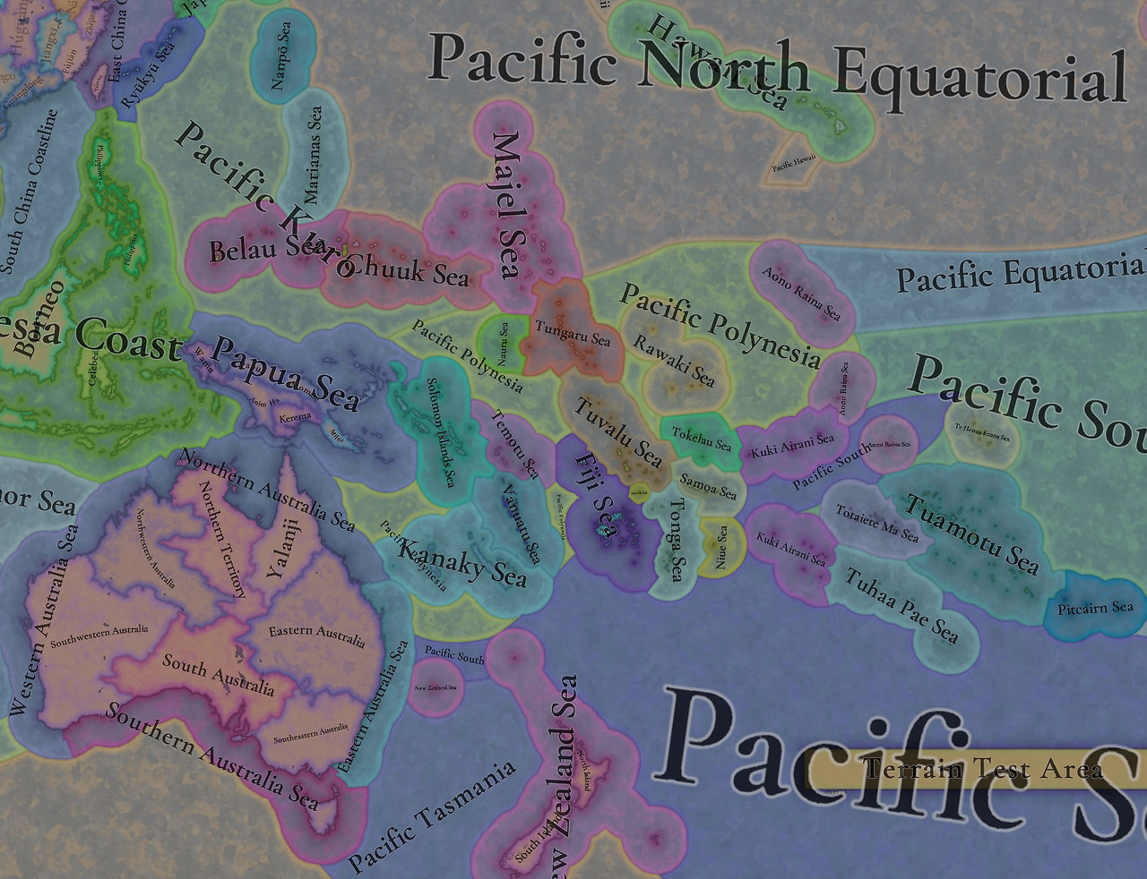 오른쪽 아래의 직사각형은 우리의 3D 디자인팀이 여러 지형을 시도해보는 '3D 테스트의 섬' 입니다.