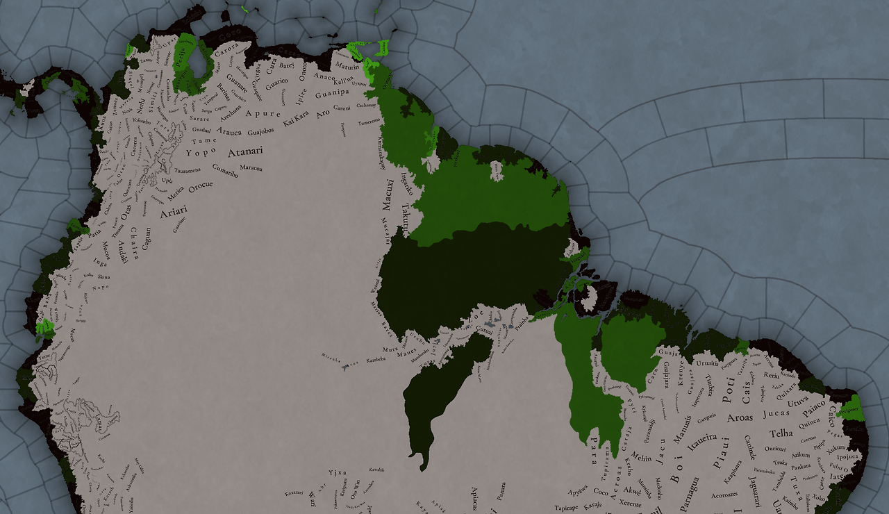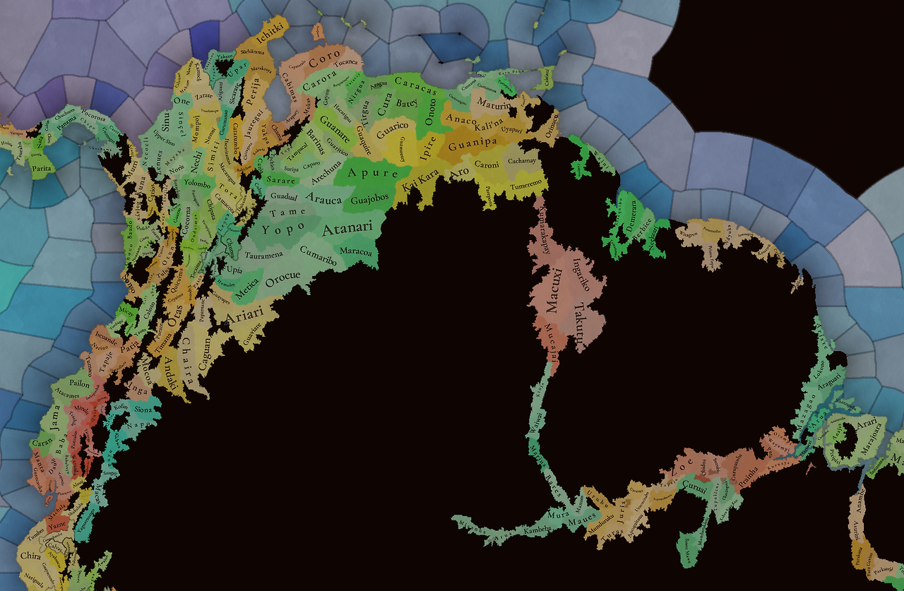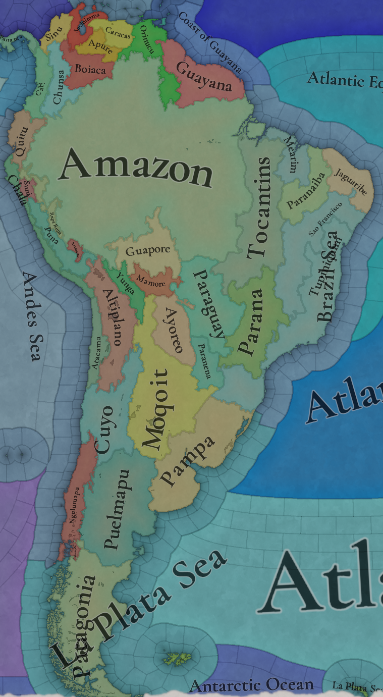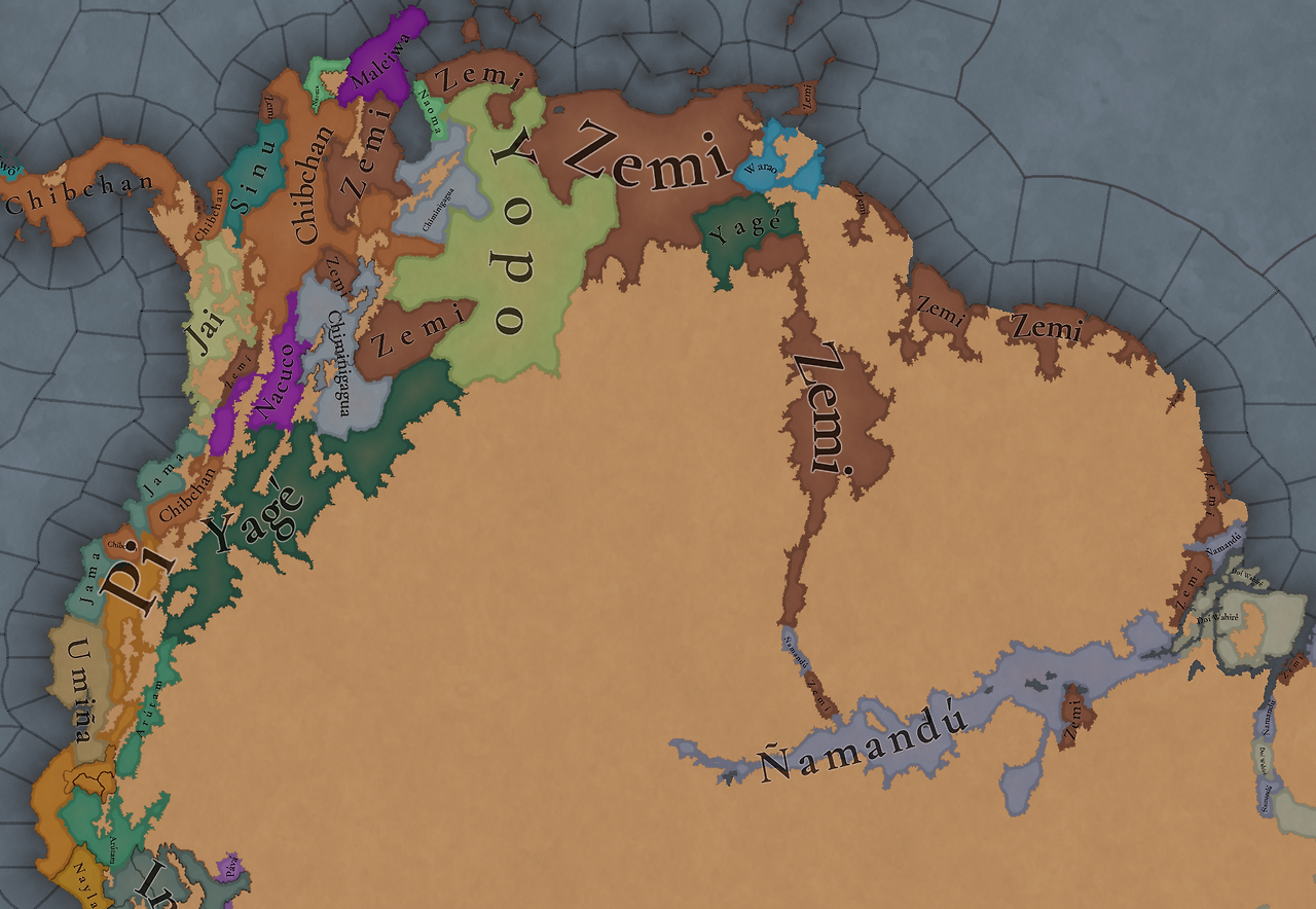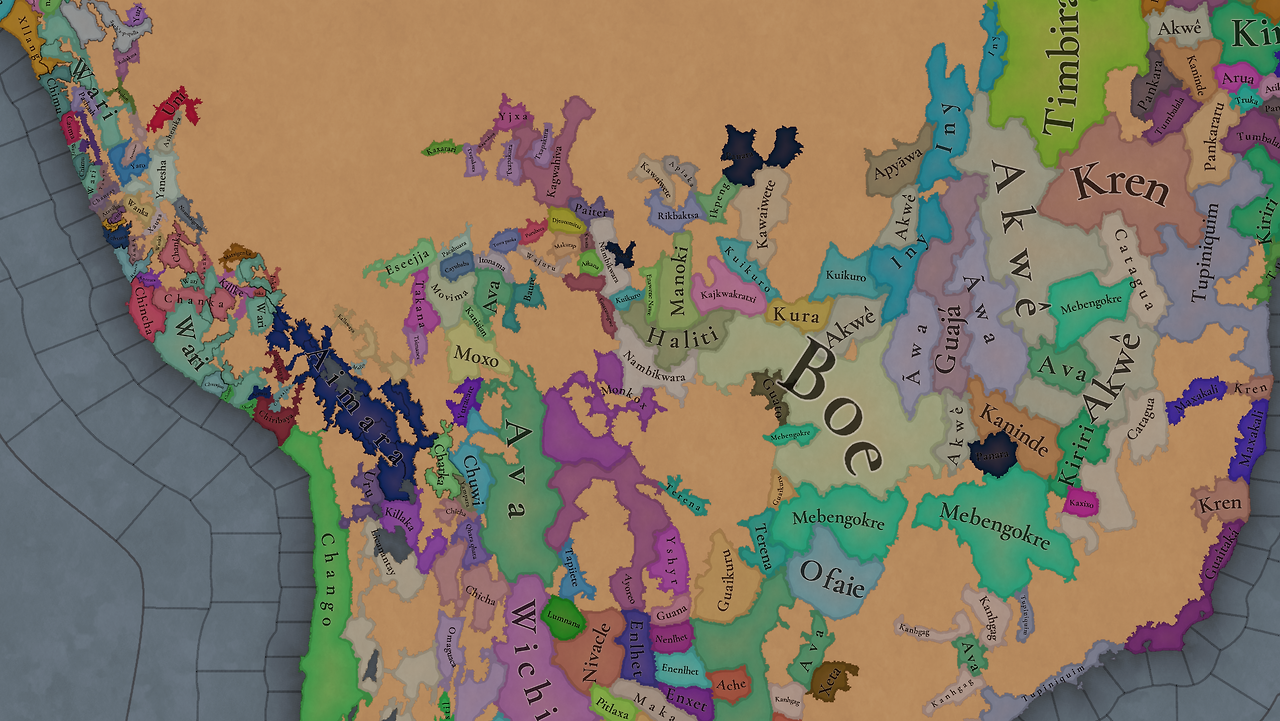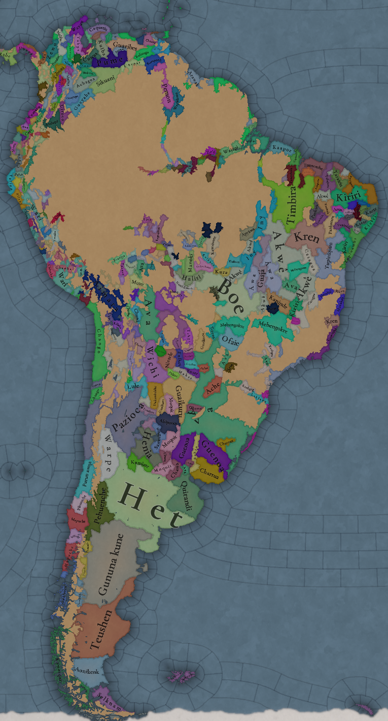 대륙 전체에 팝들의 사회가 퍼져있으며, 특히 페루에 (또다시) [팝들의 사회와 일반 국가가] 흥미롭게 섞여 있습니다. 우리는 두 가지 국가의 공존을 지도에 보기 좋게 표시하는 방법을 생각해 보고 있지만, 시간이 조금 필요합니다