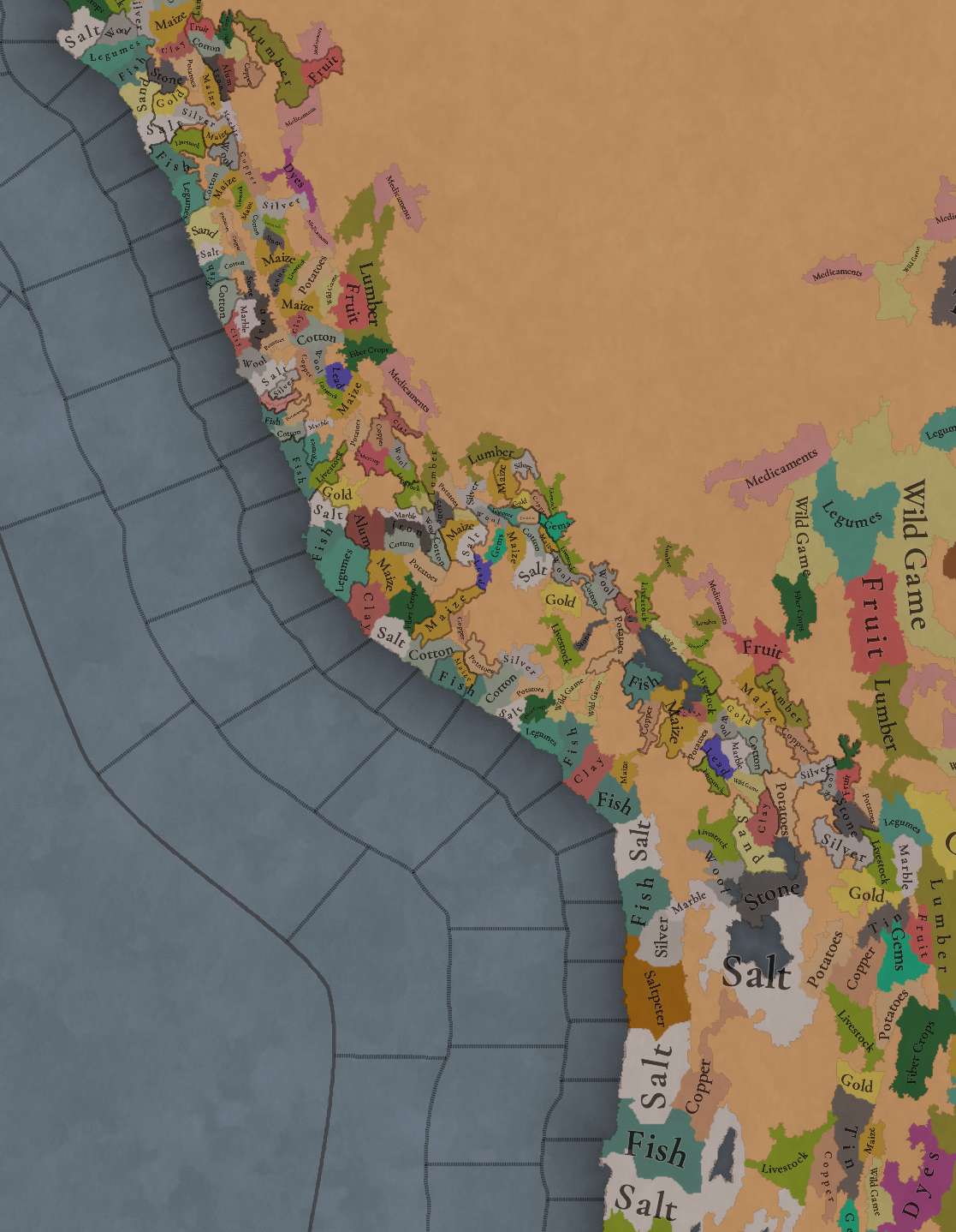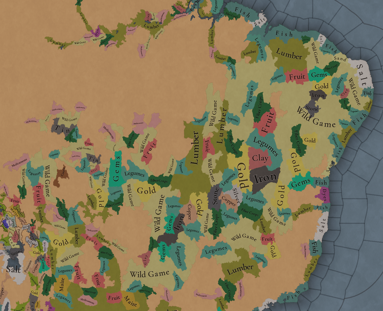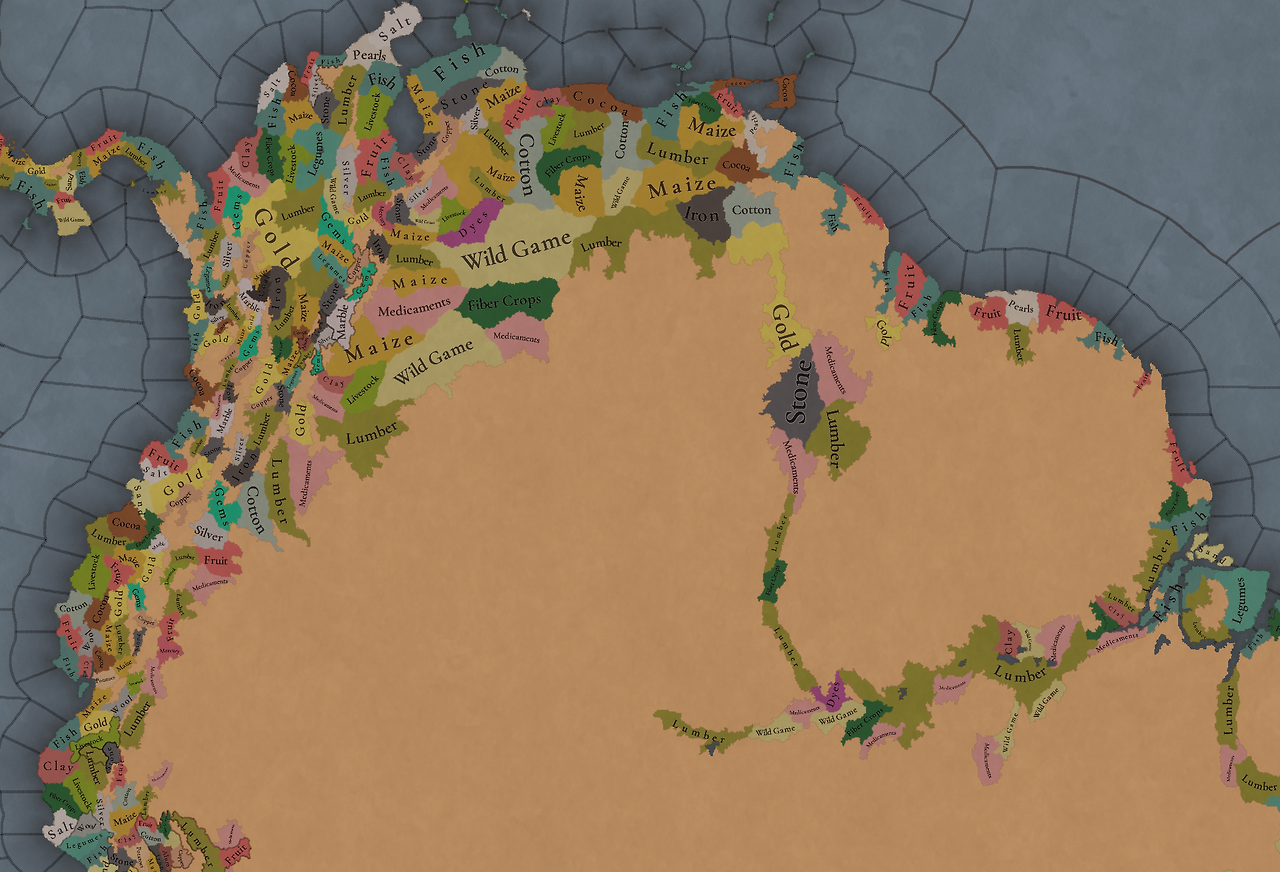 다양한 원자재가 있습니다. 약재 등 몇몇 원자재는 이웃 메소아메리카에 비해 훨씬 많습니다. 우리는 원자재들의 색을 바꾸고자 하고 있으니 피드백 부탁드립니다.