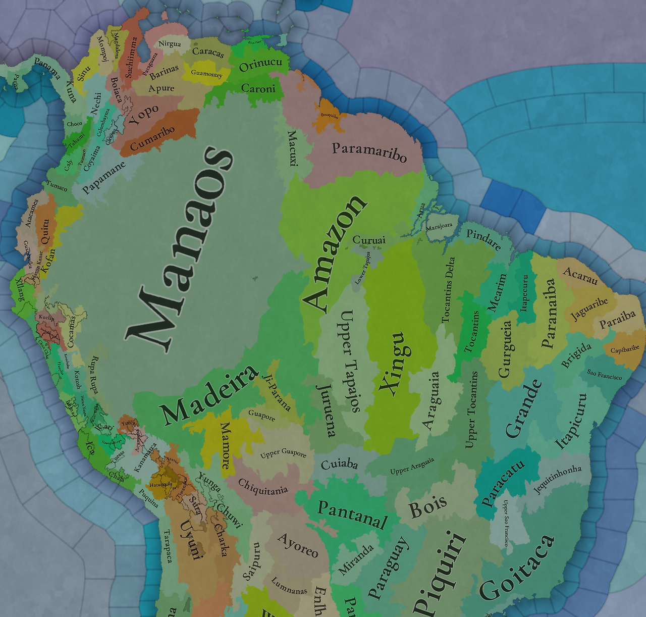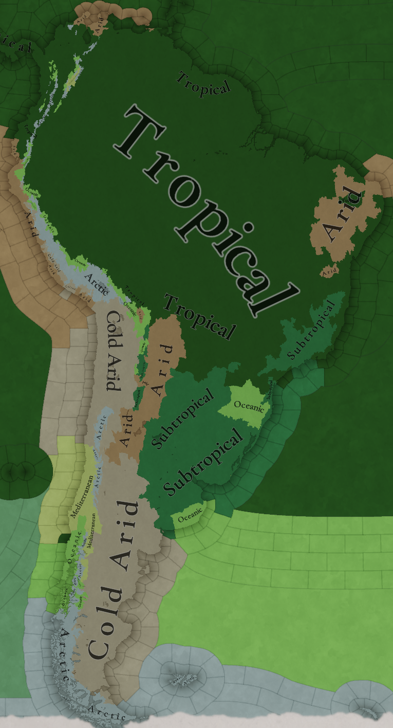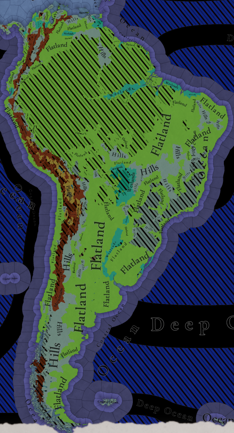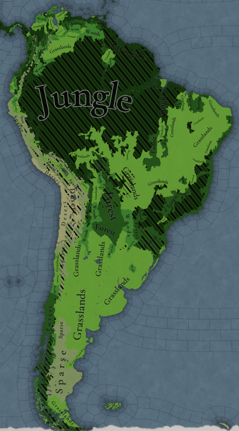 남미는 지형이 다양한 대륙입니다. 우리가 표현하고자 한 것 하나는 포르투갈인들이 식민화하기 전 대륙에 있었던 넓은 숲인 마타 아틀란티카입니다. 이를 위해 브라질 팬들의 피드백을 통해 최대한 사실에 가깝게 표현하고자 노력하고 있습니다. 아래는 여러분에게 느낌을 전해드리기 위한 우리가 사용한 사진입니다