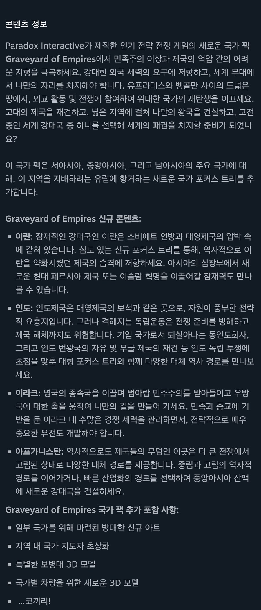 [신작]HOI4 : 제국의 무덤 - 출시일 트레일러 작성자몬타나JS|작성시간25.02.11|조회수1,138 목록 댓글 5 글자크기 작게가 글자크기 크게가 Hearts of Iron IV: Graveyard of Empires | Story Trailer | Available March 4 3월 4일 발매.....그리고 코끼리! 다음검색 현재 게시글 추가 기능 열기 북마크 공유하기 신고 센터로 신고 댓글 댓글 5 댓글쓰기 답글쓰기 댓글 리스트 작성자Cambrai | 작성시간 25.02.11 인도 어느 지하실의 테이프 콜렉션은 오늘도 증가일로인듯 합니다. 작성자에스타 | 작성시간 25.02.11 코끼리!!! 작성자견환 | 작성시간 25.02.11 중점 늘어나거나 개편되는 간 좋고 가격이 관건이군요 작성자심심타파이야 | 작성시간 25.02.11 위버멘쉬가 또 어떤 코옵영상 만들까ㅋㅋㅋ 작성자막쉬무스 | 작성시간 25.02.15 코끼리타고 총쏘남 댓글 전체보기