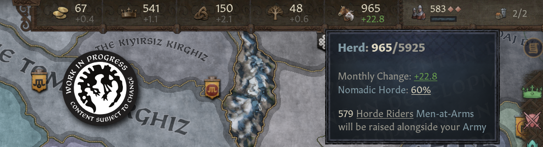 -유목민 정부는 소,말을 나타내는 "무리"라 부르는 새로운 게임상 재화를 얻음