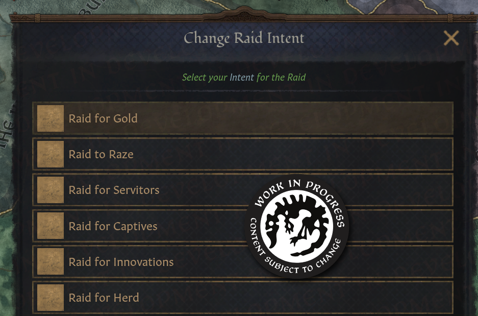 -약탈 의도는 약탈의 원하는 결과를 설정할 수 있게 해줌: 포로 획득, 무리 약탈, 혹은 아예 태워버리기 등