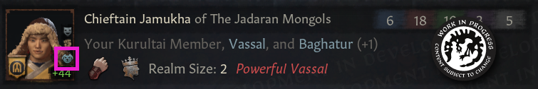 -추가로, 지배력은 특수 무장병 및 작위, 봉신 철회, 대초원 외부의 정착지, 고유 결단 등을 사용할 수 있게 해줌