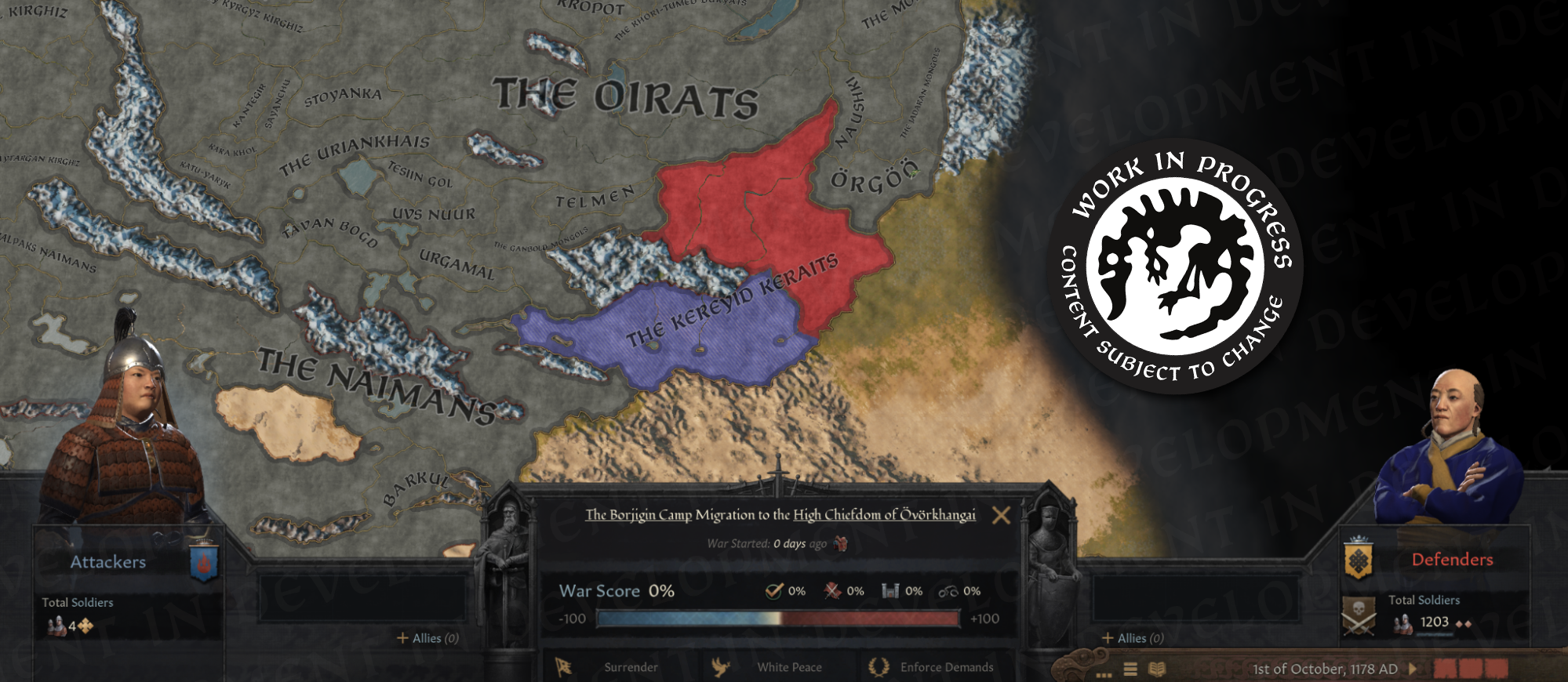 -지배력은 잃을 수도 있음: 새로 추가되는 굴욕주기 전쟁 명분을 통해, 더 높은 지배력의 유목민의 지배력을 한 단계 낮출 수 있음 - 이는 당신에게 무리 일부와 위신을 제공하며, 대상의 일부 봉신들은 비복종 상태가 됨