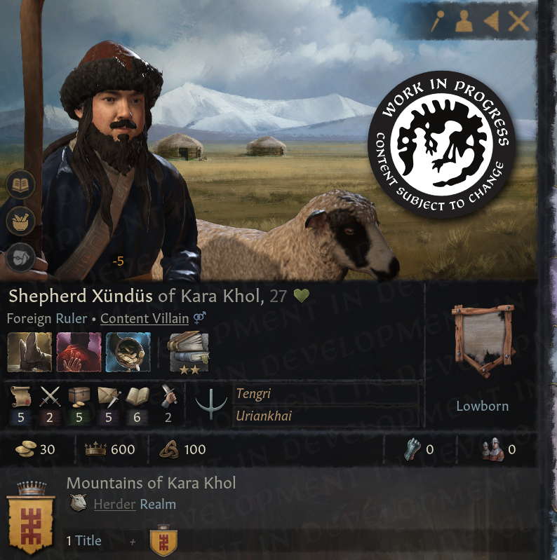 -목축인을 신하로 두는 것은 가능하나, 백작령의 비옥도에 따라 고정된 수치의 무리만 조금 제공해줄 것임