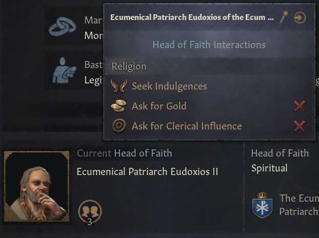 -이제 씨족제 통치자는 모든 봉신들과 결혼할 필요 없어짐: 오직 권세 봉신만이 주군과의 결혼 동맹을 원함. 이를 통해 모든 인물과 -20 의견 없이, 특정 인물들만 집중 가능
