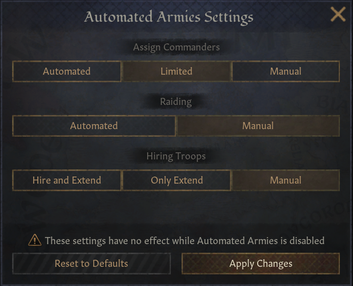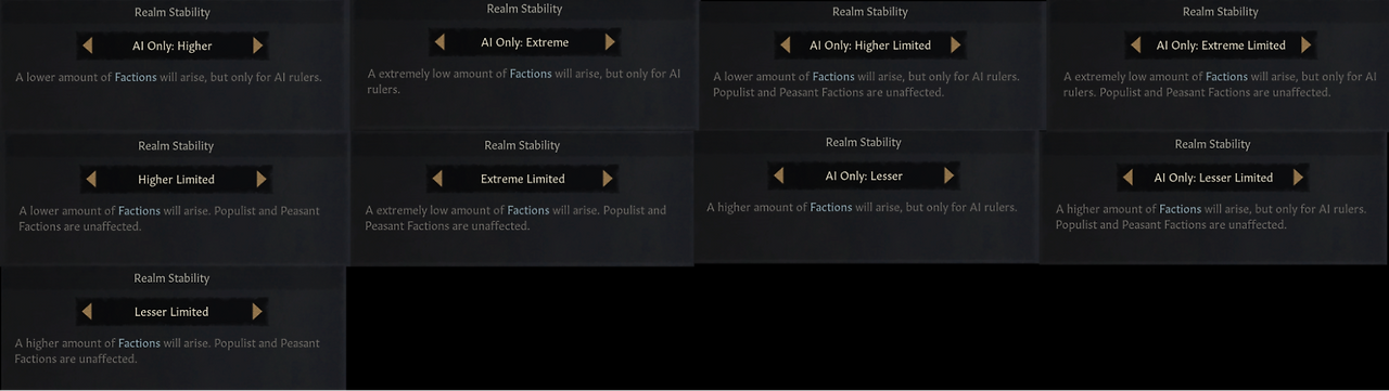 • It’s now possible to script and trigger ‘War Stances’ for the AI to use. In the base game only ‘Balanced Offensive’ and ‘Balanced Defensive’ are used (alongside some special ones for Great Holy Wars).