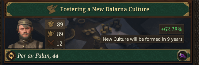 - 새로운 문화 형성 : 플레이어가 왕국 혹은 제국이며 주 문화의 지배적 국가가 아닐 경우, 현재의 주 문화에서 벗어나 새로운 문화를 형성할 수 있음