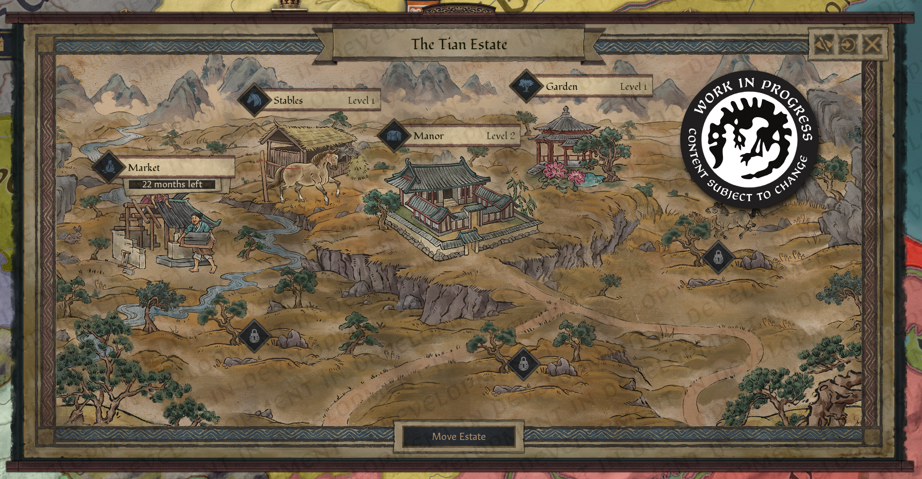 비잔티움 행정제에서 주어지는 장원과 비슷하나 천자국 관련 특수한 요소를 넣을 예정이며 가주의 직함에 따라 지을 수 있는 건물의 종류가 달라질 예정