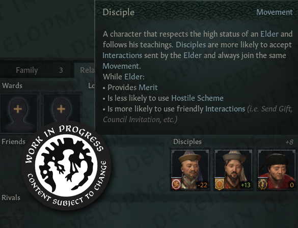 각 운동을 주도하는 신하는 황제와의 상호작용이 가능해지며 파벌의 지도자가 되려면 내부 경쟁에서 이겨야 함