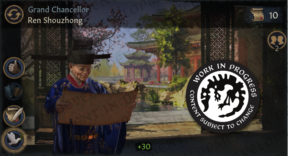 예부(Minister of Rites): 제례 및 과거제 담당. 게임 내 기능은 궁정 사제의 것을 가져온 걸로 추정