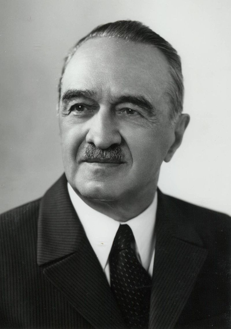 아나스타스 미코얀은 1895년에 태어나 1978년에 죽었습니다. 아르메니아인이었죠. 캅카스의 공산당에서 활동한 그는 일찍이 스탈린과 오르조니키제와 친분이 있었습니다. 1923년에 중앙위에 올라왔고 나중에는 정치국으로 올라와 주로 식량문제, 외국과의 무역을 맡았습니다. 이 때 가정용 요리책 편찬 사업을 지휘하기도 했고 헨리 포드와 만나서 미소 경제 교류 확대에 대해 이야기 하기도 했습니다. 전쟁 시에는 역시 스탈린을 도와 각종 행정 업무를 맡았고 스탈린그라드 전투 때 파일럿으로 참전한 아들을 잃기도 했습니다. 스탈린 사후 권력투쟁에서 흐루쇼프를 지지하였고 20차 공산당 대회에서 최초의 반스탈린 연설을 행한 사람이기도 합니다. 줄곧 흐루쇼프를 지지하여 요직에 있었으나 브레즈네프가 흐루쇼프를 밀어내자 조용히 은퇴하게 됩니다. 상당히 불명예스러운 취급을 받았던 흐루쇼프와 달리 미코얀은 그래도 후배들이 레닌훈장을 주는 등 어느 정도 예우를 해줬습니다. 흐루쇼프의 장례식에 화환과 애도의 편지를 써서 보냈고 7년 뒤 1978년에 84세로 자연사합니다.