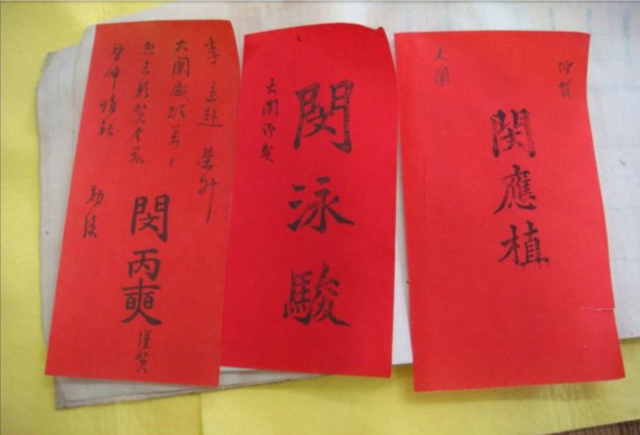 빨간 종이에 이름을 적어 놓은 게 보입니다.