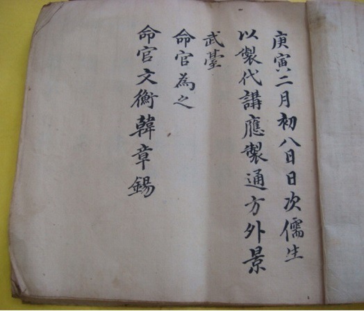 '경인 이월 초팔일 일차유생 이제대강 응제 통방외 경무대 명관위지 명관문형 한장석'
