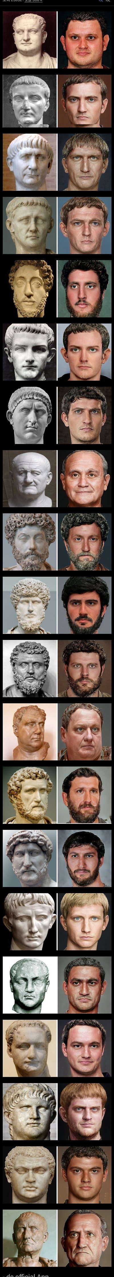 작성자대명궁 작성시간 20.08.20 로마황제의 조각이 현실적이라고 한다면 저 복원 모습이 맞겠죠. 최대한 미화를 배제 했다고 하면.. 전형적인 라틴계 모습이네요.. 로마제국이 후기로 가면 스페인 그리스 시리아계 출신 황제가 나와서 현대의 남유럽인 보다 좀 다양하지 않을까 하는데..