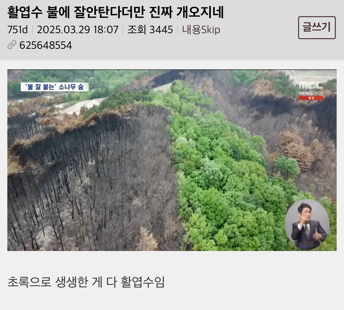 뿌리도 깊게 내려가면서 불에도 안타는 수종 개발을 목표로 해야한다고...