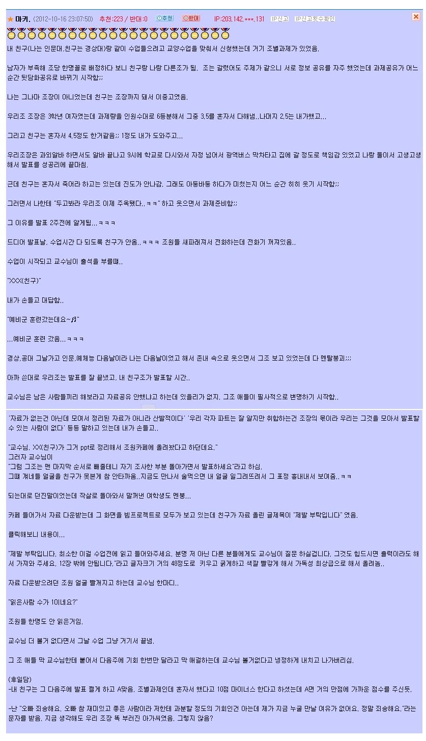 이런 사람이 조원으로 있으면 조별과제는 망한거임 -
