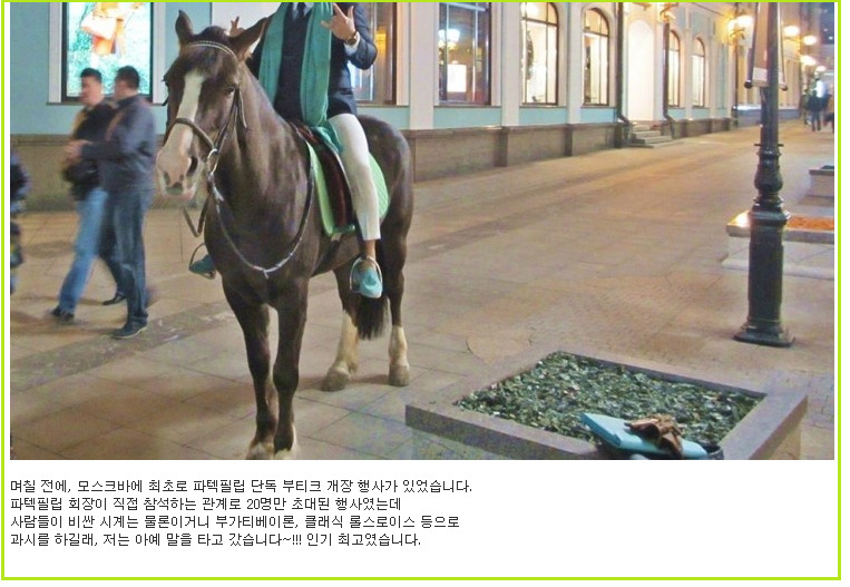 20명만 초대된 세계 최고의 시계 브랜드 '파텍필립'의 개장 행사에 말을 타고 다니고,