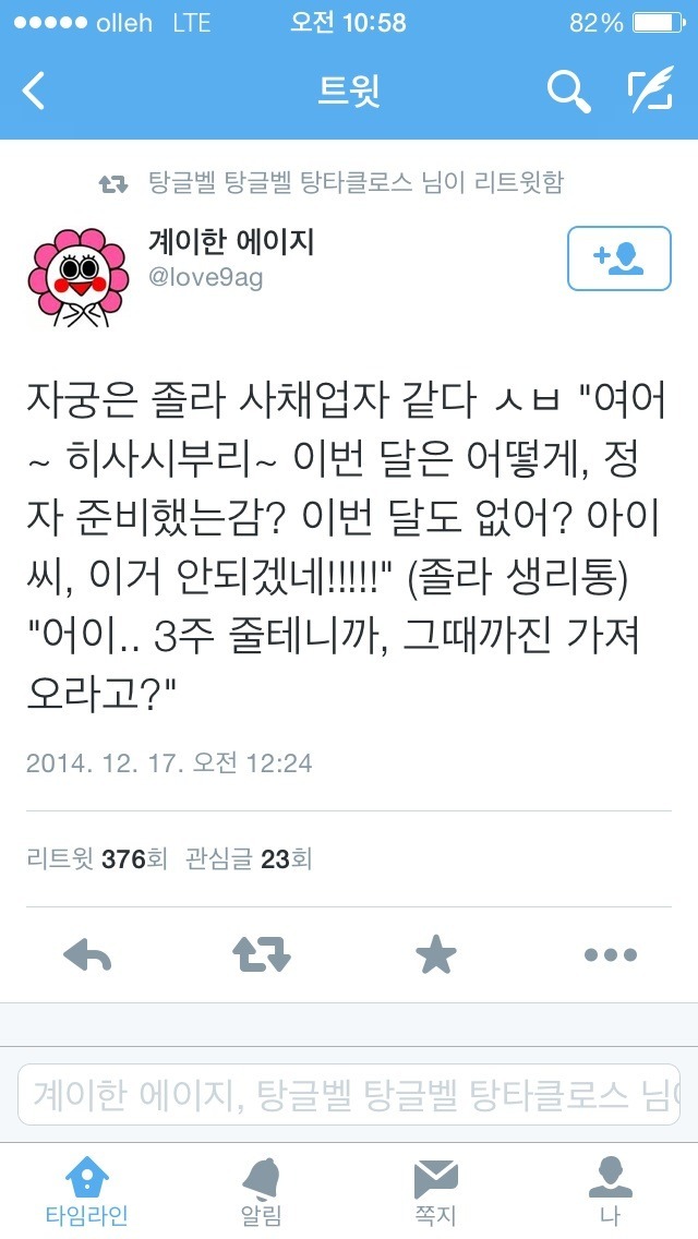 여자의 그날이란 작성자에코웨이브|작성시간14.12.24|조회수684 목록 댓글 4 글자크기 작게가 글자크기 크게가 다음검색 현재 게시글 추가 기능 열기 북마크 공유하기 신고 센터로 신고 댓글 댓글 4 댓글쓰기 답글쓰기 댓글 리스트 작성자commissar | 작성시간 14.12.24 하지만 생리기와 가임기는 다름 작성자보에몽 | 작성시간 14.12.24 일본구어체..;; 작성자Suhanmu | 작성시간 14.12.24 ㅁㅊㅋ 작성자미나즈루 | 작성시간 14.12.24 생리기랑 가임기는 다르니까...여러분 남자도 가임기 생리기간 잘 알아두셔야해요 댓글 전체보기