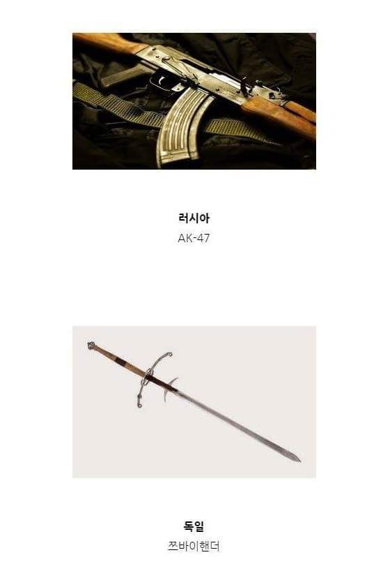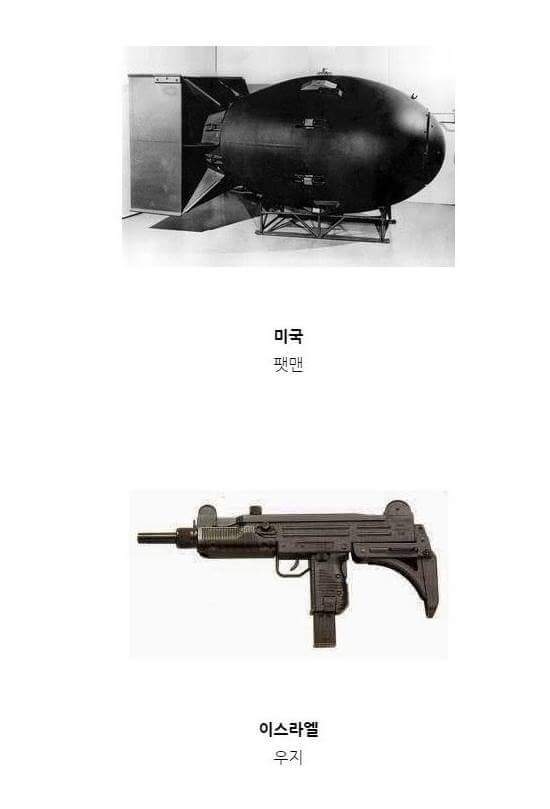 [혐주의]나라별 대표무기 작성자미닉이|작성시간15.08.17|조회수881 목록 댓글 9 글자크기 작게가 글자크기 크게가 으으..블록ㅠㅠ 다음검색 현재 게시글 추가 기능 열기 북마크 공유하기 신고 센터로 신고 댓글 댓글 9 댓글쓰기 답글쓰기 댓글 리스트 삭제된 댓글입니다. 답댓글 작성자노희훈 | 작성시간 15.08.17 대전차 죽창술! 작성자잉어 | 작성시간 15.08.17 한국하면 활.. 이 아니라 김치죠 작성자마하반야 | 작성시간 15.08.18 영국은 맥심 기관총이 더 나을 거 같은데.. 답댓글 작성자Robert Edward O. Speedwagon | 작성시간 15.08.18 영국은 요리입니다. 댓글 전체보기