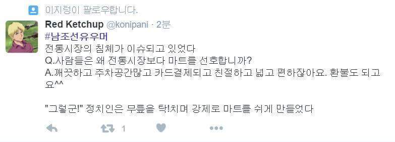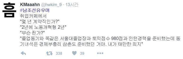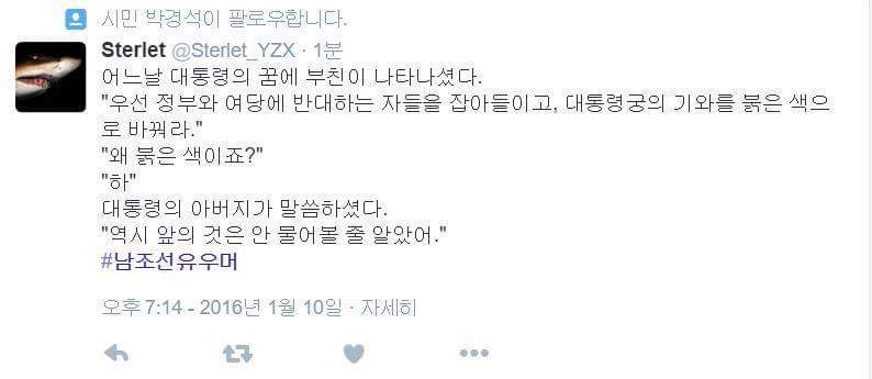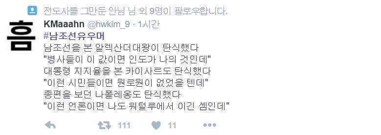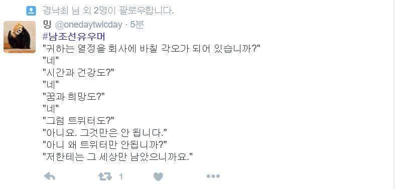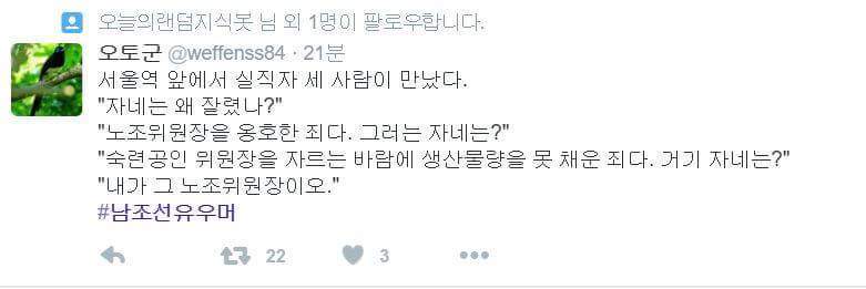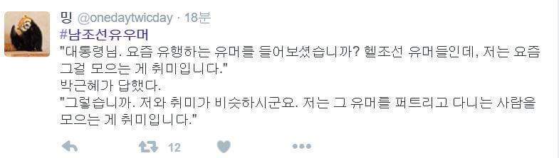 작성자Imperium Romanum 작성시간 16.01.12 유머 자체는 상당히 좋은데 트위터인게 좀... 짹짹충...