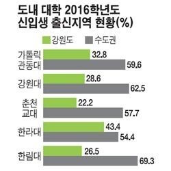 강원대 학생의 62.5프로가 수도권 출신인데