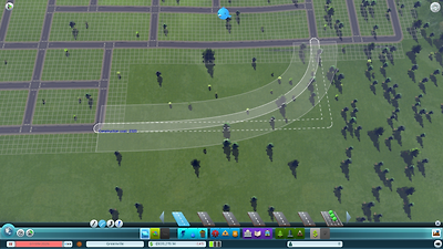 굽은 도로 건설하기 CS에서 도로를 만드는 것은 매우 간단합니다. 직선도로, 굽은도로, 자유도로 모드를 제공합니다. 이 세 가지 모드는 도로 모양을 자유롭게 만들 수 있도록 도와주며 한 모드에서 다른 모드로 자유롭게 바꿔가며 건설할 수 있습니다. 직선도로 모드로 90도로 꺾이는 도로를 만들 수 있습니다. 도로 업그레이드 툴을 사용해 도로를 업그레이드하거나 다운그레이드 할 수 있습니다. 업그레이드 툴로 자그마한 도로에 있는 장식물들을 없애서 자그마한 도로를 중간 크기나 대형 크기로 만들 수 있습니다.