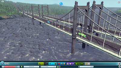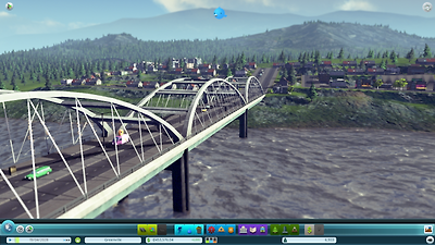 교량과 고가도로 교량은 강을 건너기 위해 건설하는 것이든 산악 지형에서 협곡을 건너기위한 것이든 도로 건설에서 중요한 부분입니다. CS에서 교량은 물이나 가파른 곳 등 조건이 맞아떨어지면 자동적으로 건설됩니다. 교량의 종류는 도로 종류에 따라 결정됩니다. 저희는 도로 폭에 상관없이 교량 모습을 다양하게 하고싶었습니다. 소형도로로는 시민들이 떨어져 죽지 않도록 난간이 있는 소형 교량이 만들어집니다. 반면 대형도로나 고속도로는 거대한 지지대가 있는 현수교 같은 것이 생기죠. 교량 건설 비용은 (고가도로도 마찬가지로) 일반 도로 건설 비용보다 비쌉니다. 교량은 좀 더 계획적으로 지어야 한다는 걸 의미하지요.