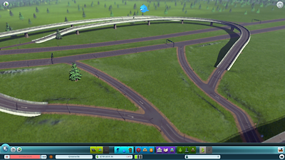 고가도로 역시 구현되어 있습니다. 건설하는 법은 간단합니다. 페이지 업 키와 페이지 다운 키를 이용해 도로를 높이거나 낮출 수 있습니다. 자갈길만 빼구요. 고가도로를 건설하는 것은 도시 외관을 훌륭하게 만들 뿐 아니라 교통 체증을 피해갈 수 있게 해줍니다. 고가도로에는 기둥이 있기 때문에 도로를 건설할 때 기둥이 지면에서 차지하는 공간을 고려하셔야 합니다.
