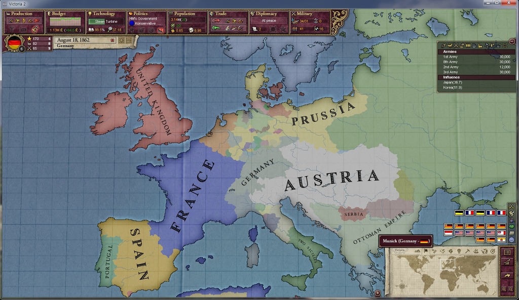 이벤트 뜬다고 어떤분이 댓글 달아주셨는데 독일도 마찬가지인것 같습니다 북독일 소국이랑 프로이센이 남았는데