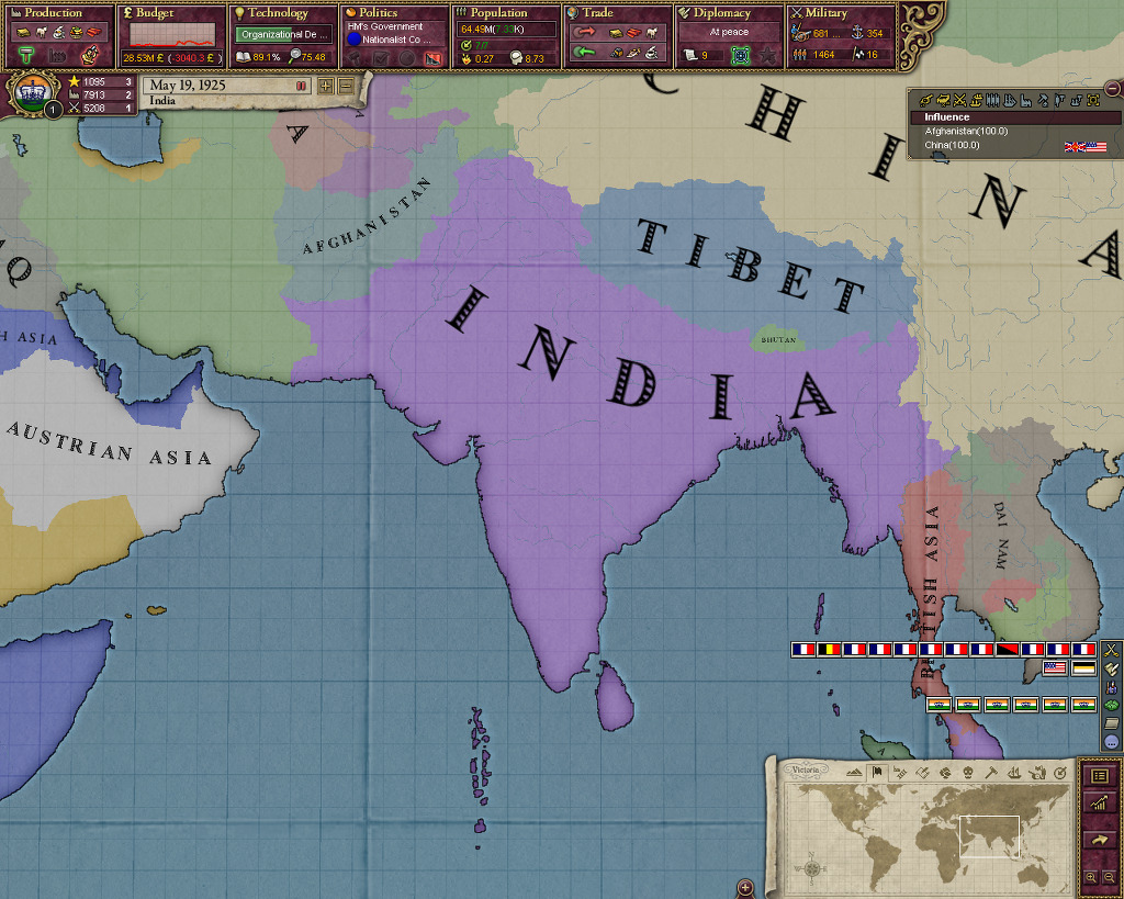 다만 영국이 아직 점령하고 있는 미얀마 남쪽이 아쉽네요.-뭐 미얀마는 나중에 인도제국에서 나와 영국 직할령이 되었으니 상관없어!!