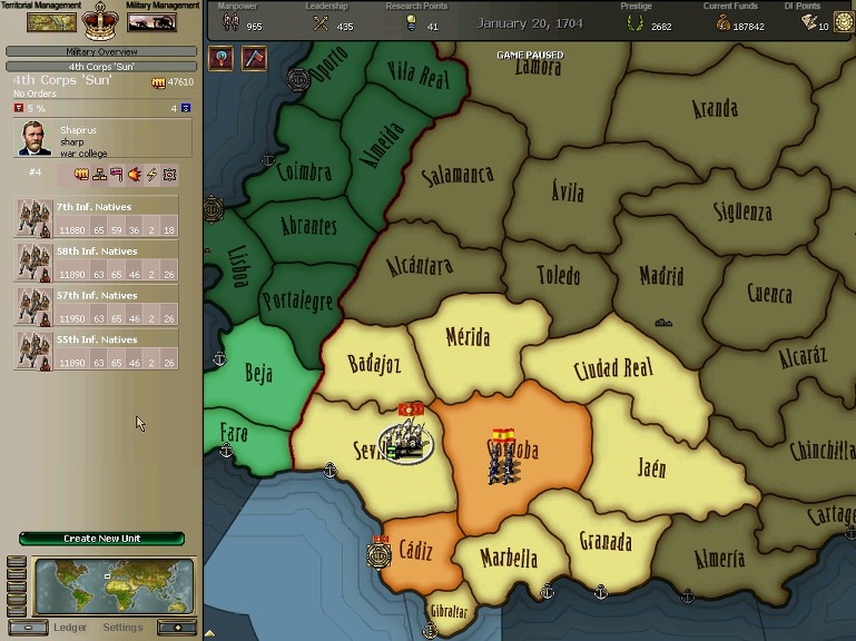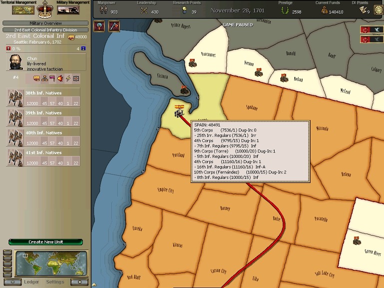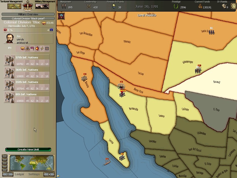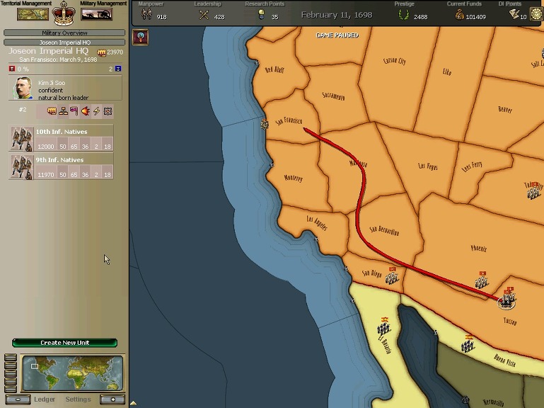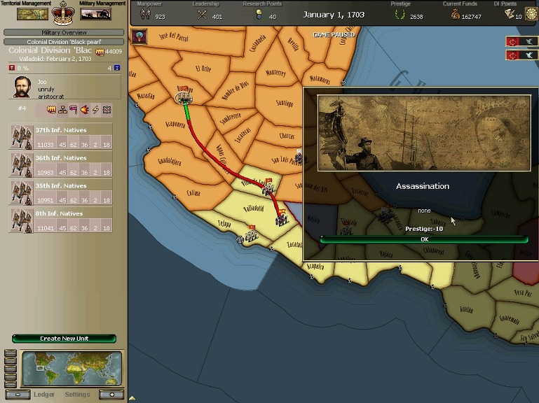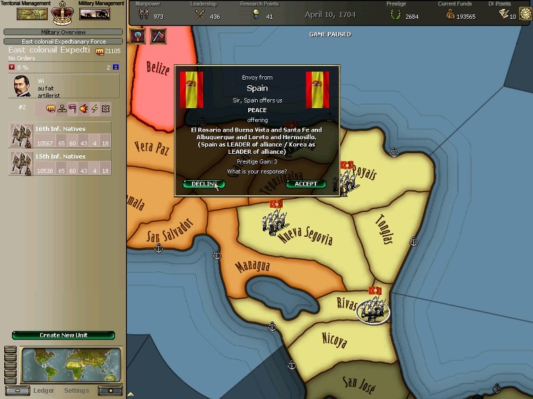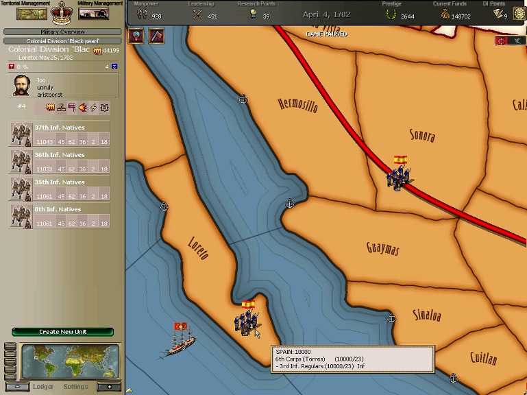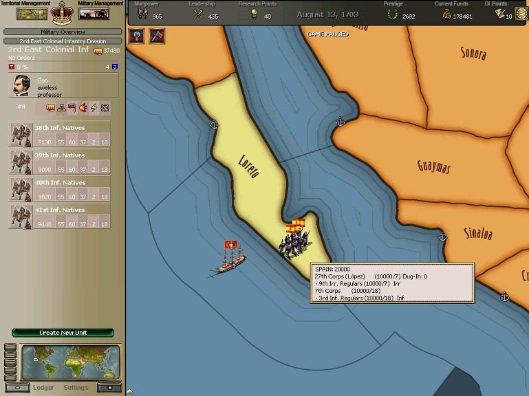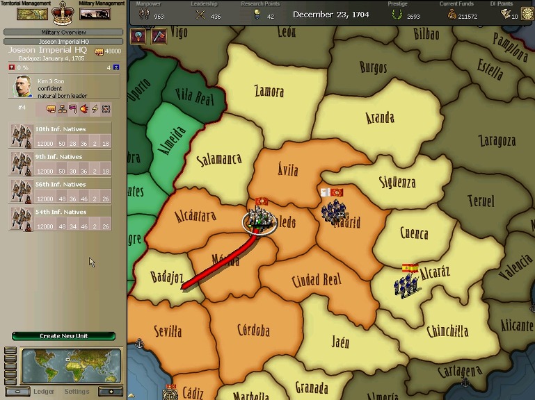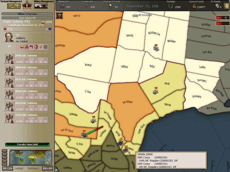 잘 훈련되어진 극동개척부의 군은 서반아 부왕령을 침식해갔다.