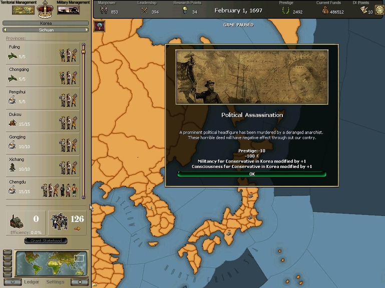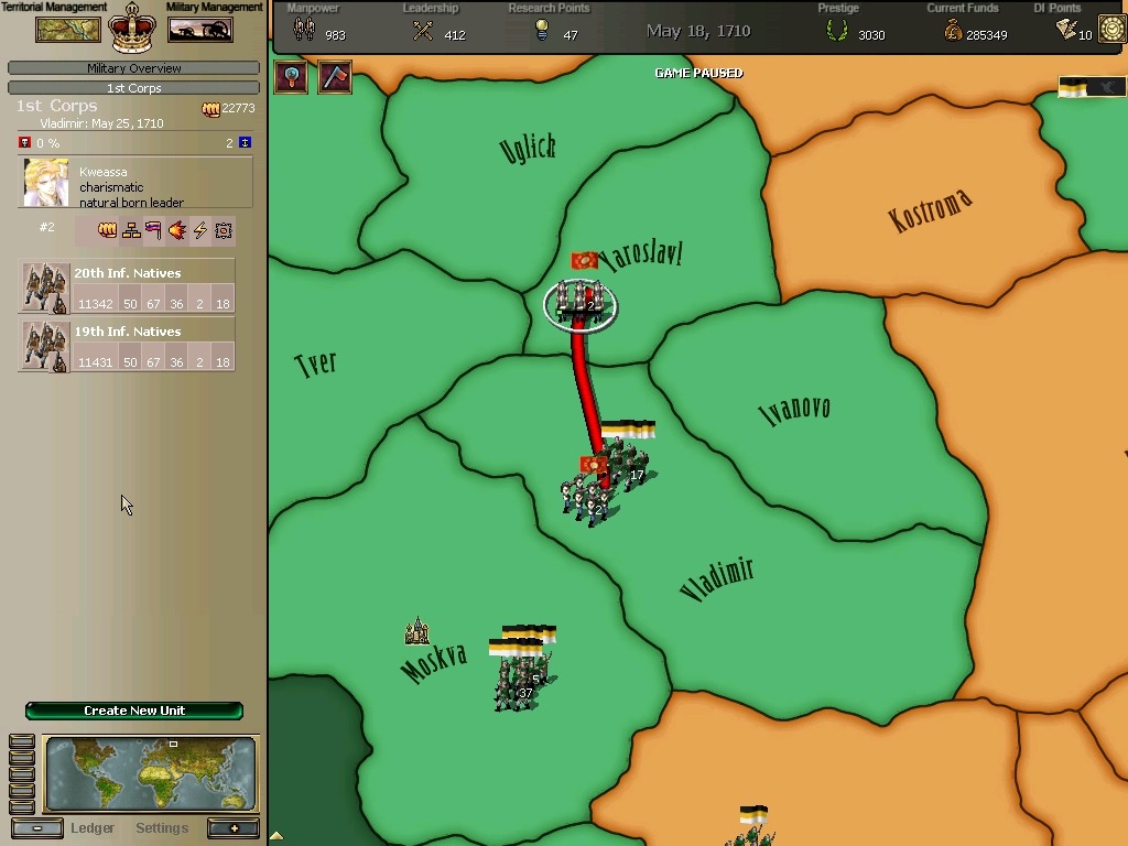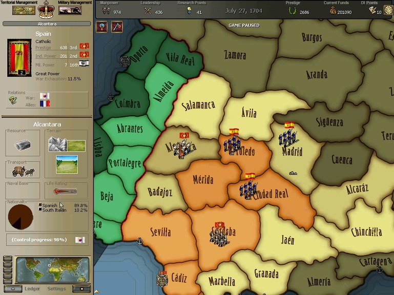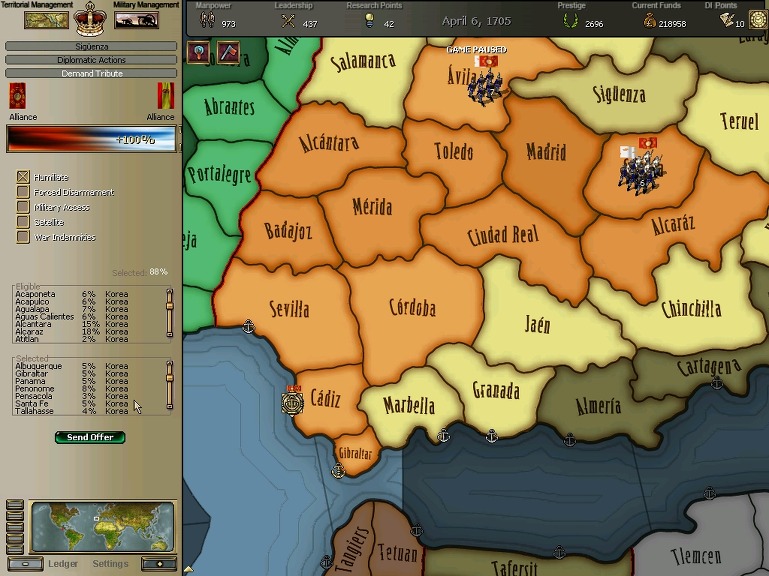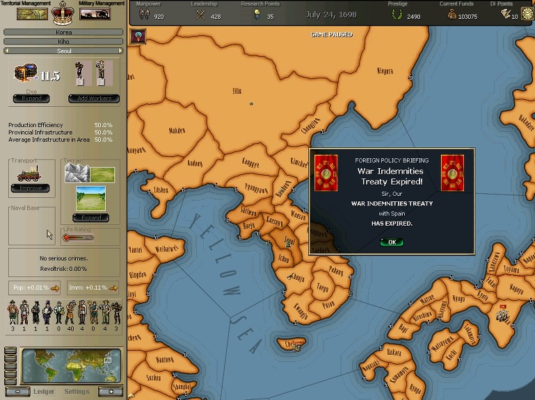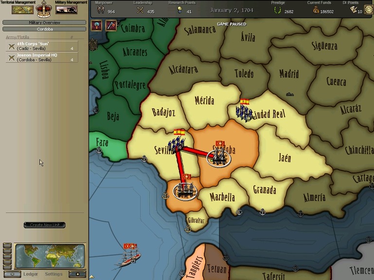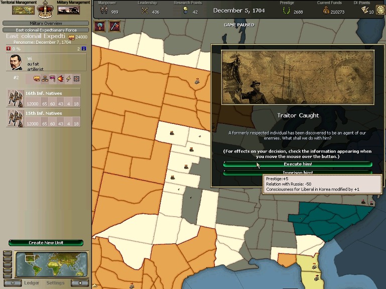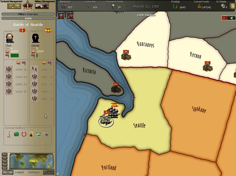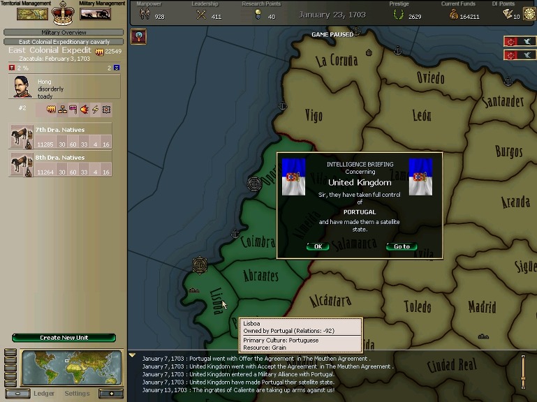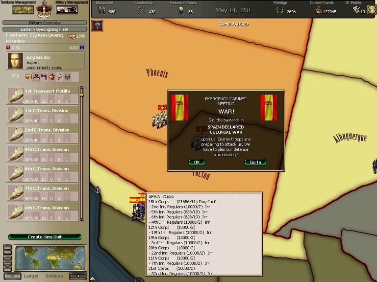 잘 훈련되어진 극동개척부의 군은 서반아 부왕령을 침식해갔다.