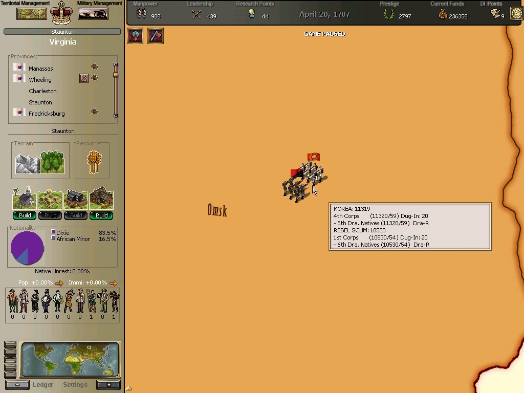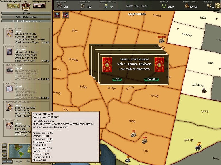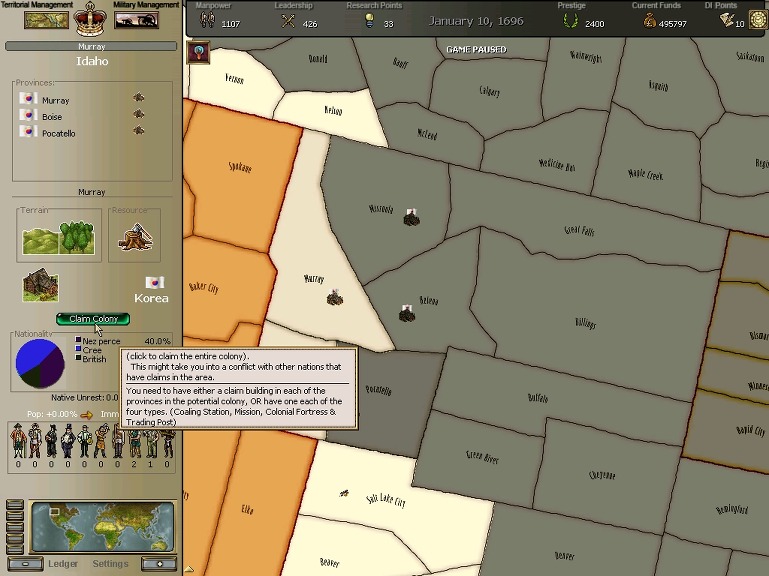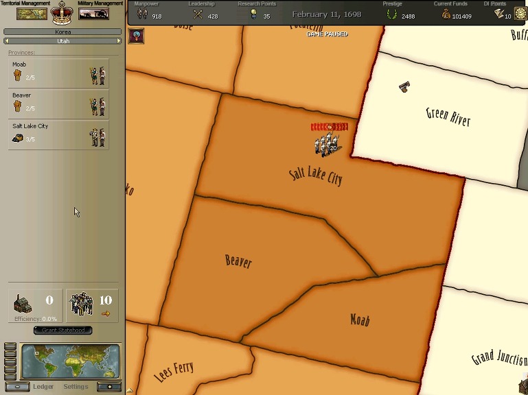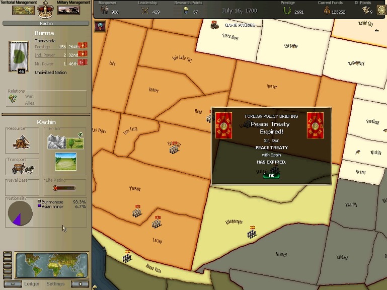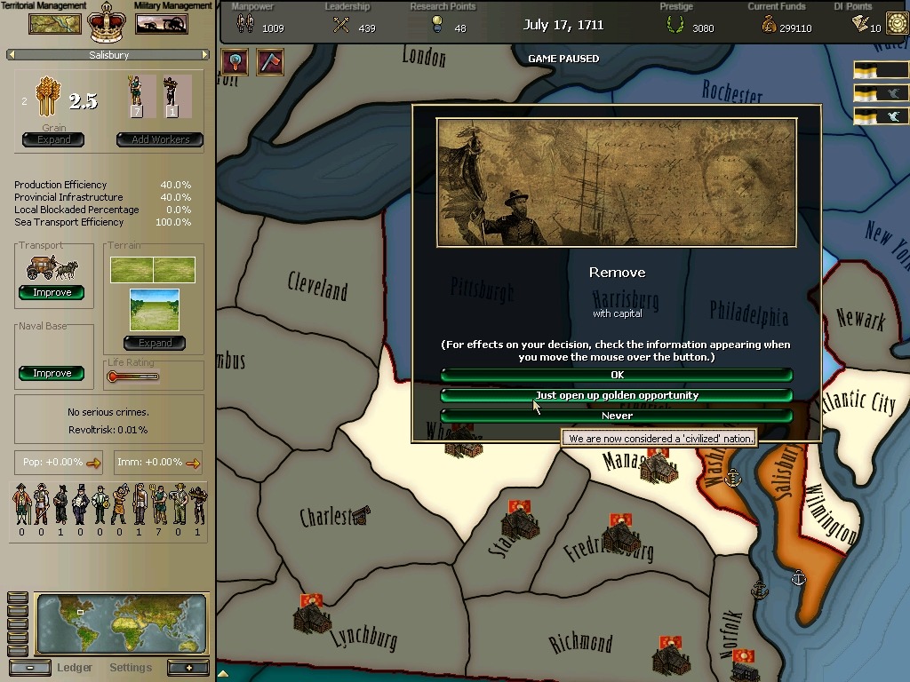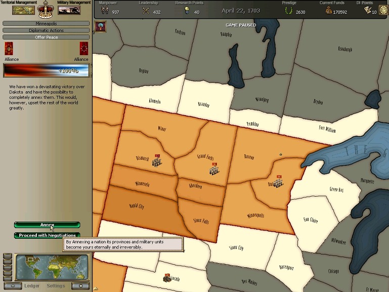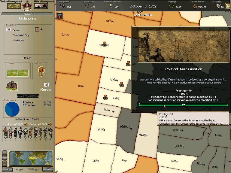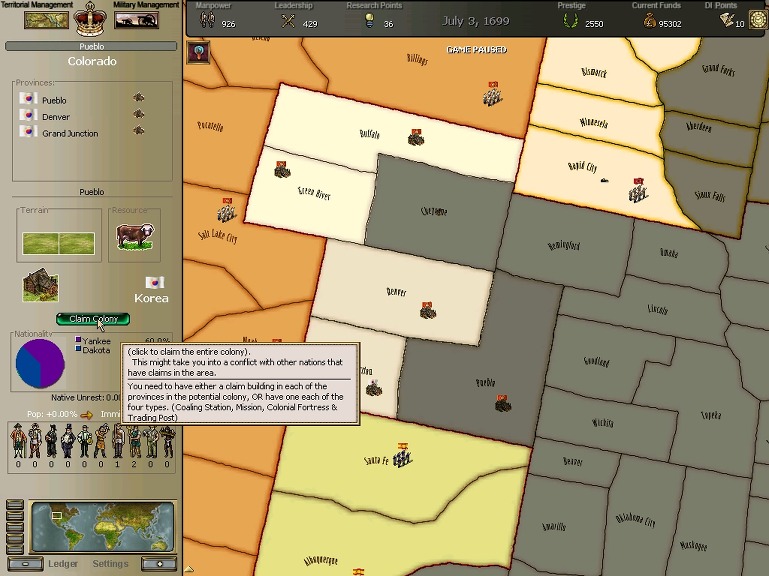 * 네브레스카도 넘어왔구요. 영국과의 교섭이 성사되어 동부의 개척도 호조를 보이고 있습니다.